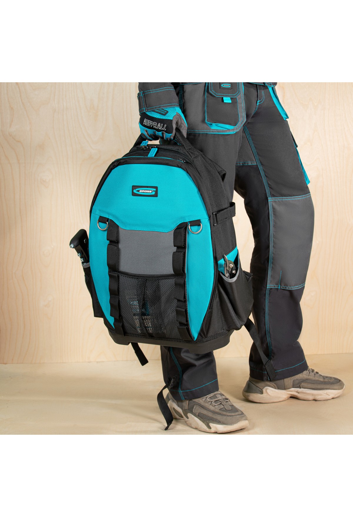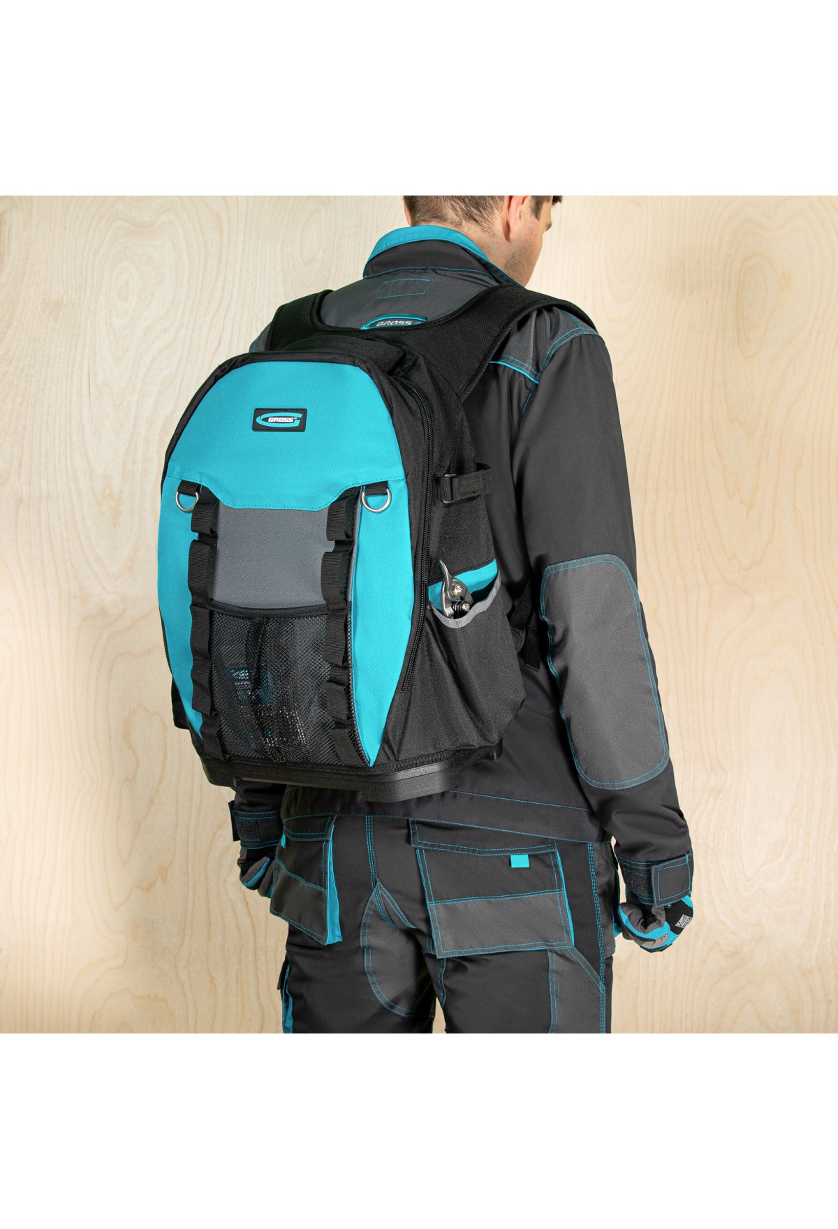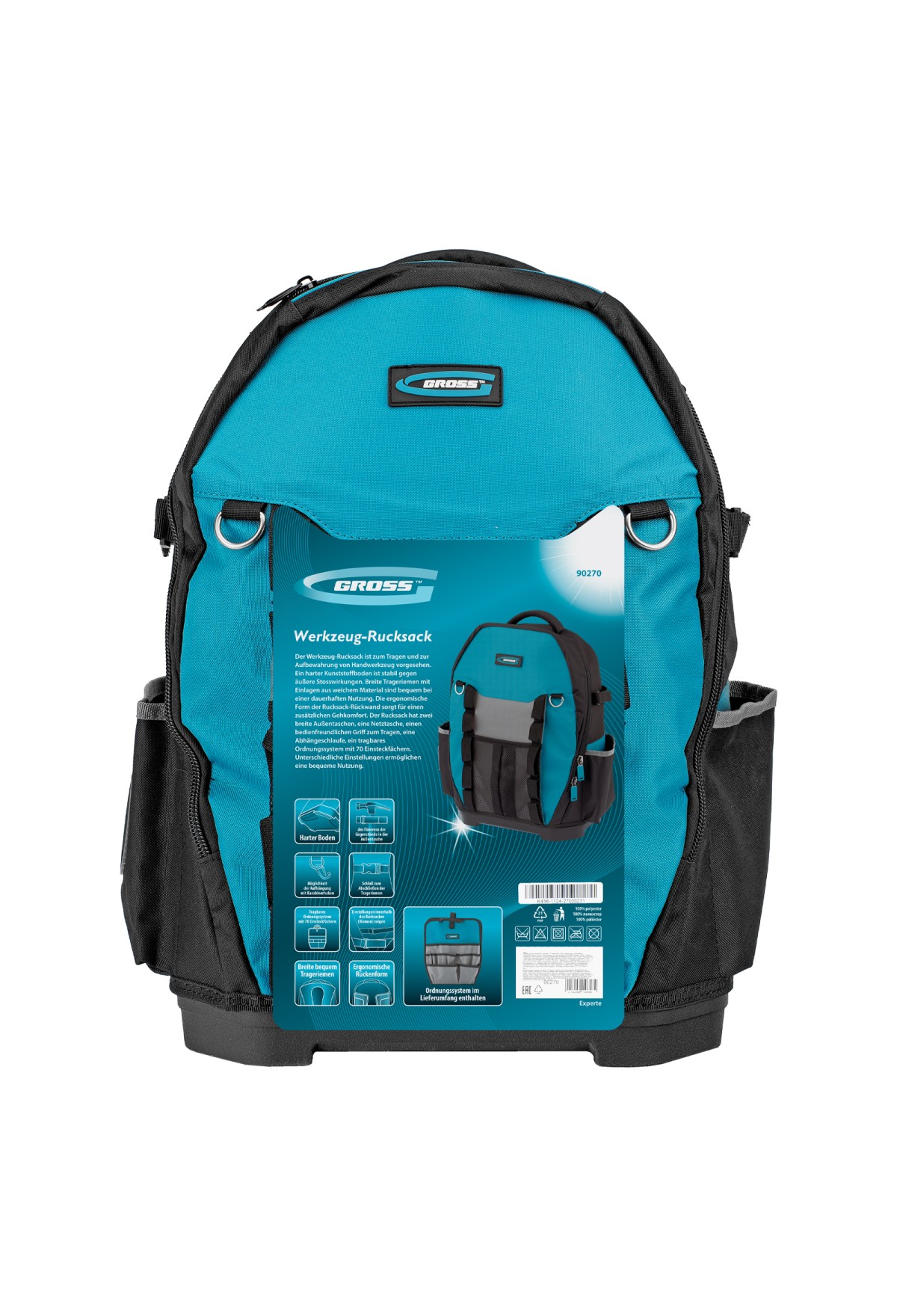 Рюкзак для инструмента Gross Experte 90270 габаритами 360 х 205 х 470 мм, с пластиковым дном и органайзером, имеет 77 карманов различной формы и размера, что позволяет максимально эффективно использовать его пространство. Предназначен для транспортировки и хранения мелкого и крупного инструмента. Органайзер с 70 карманами можно использовать отдельно, а для удобного размещения на рабочем месте предусмотрена специальная петля.