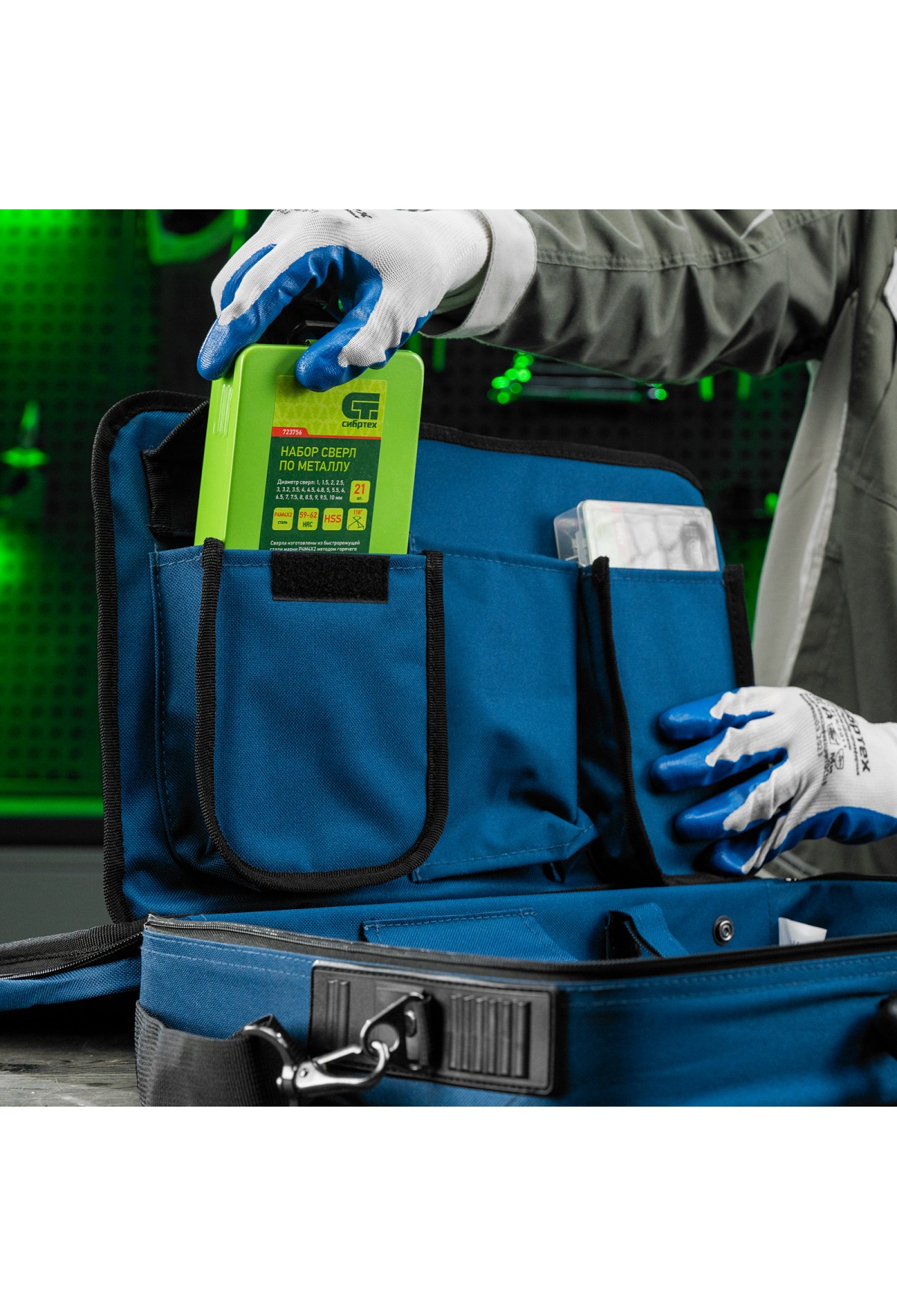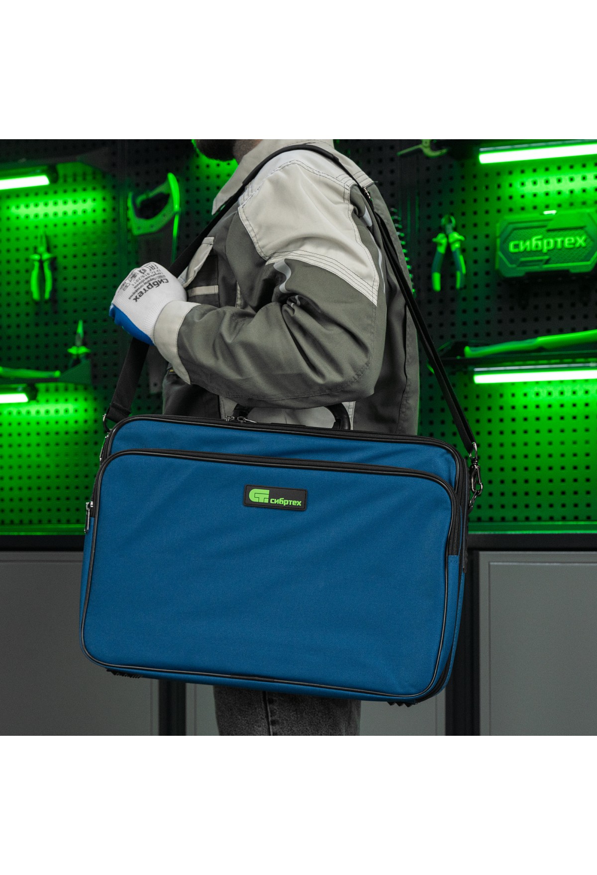 Технические характеристики Кейс монтера, 470х340х110 мм, 25 карманов, наплечный ремень Сибртех