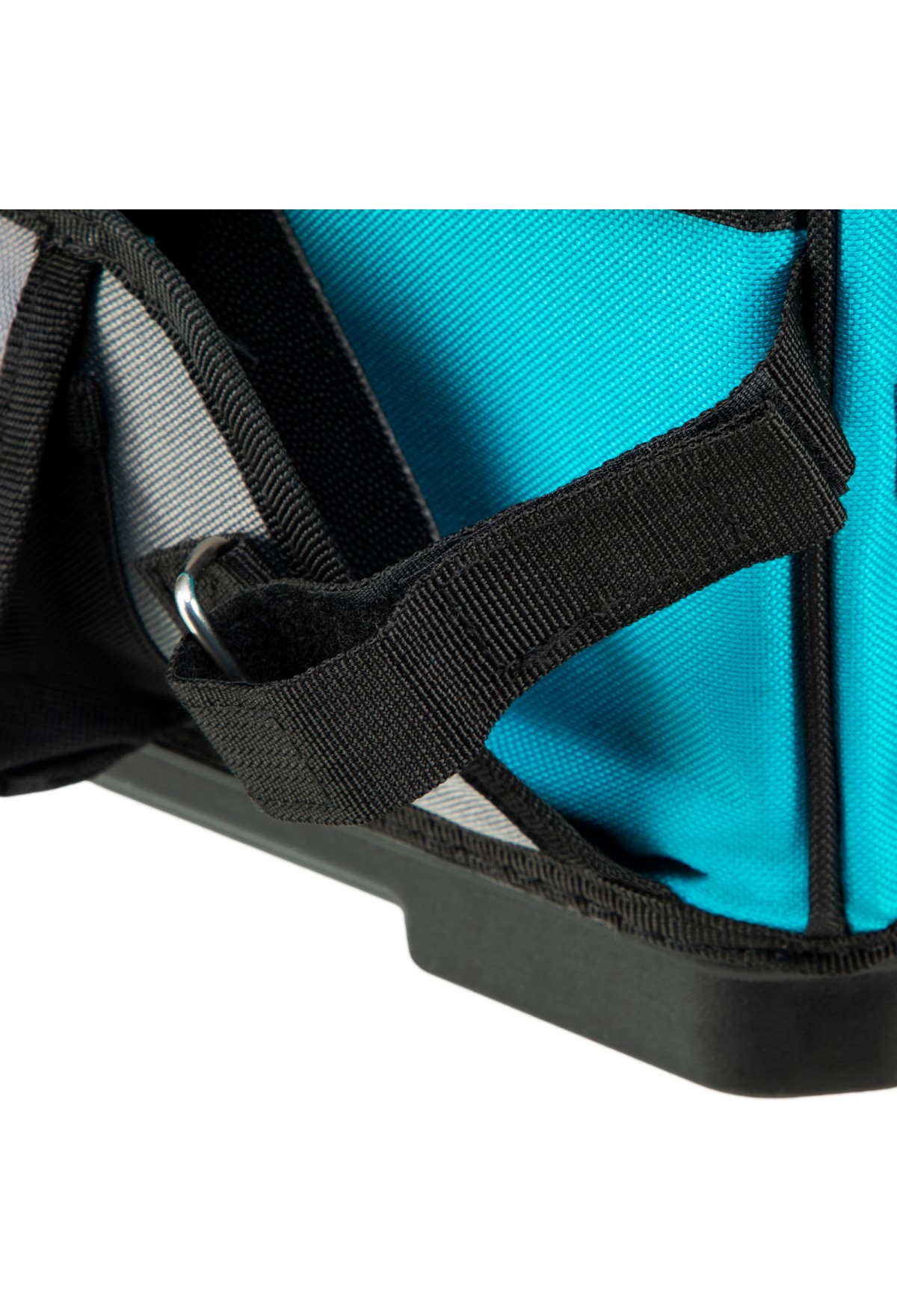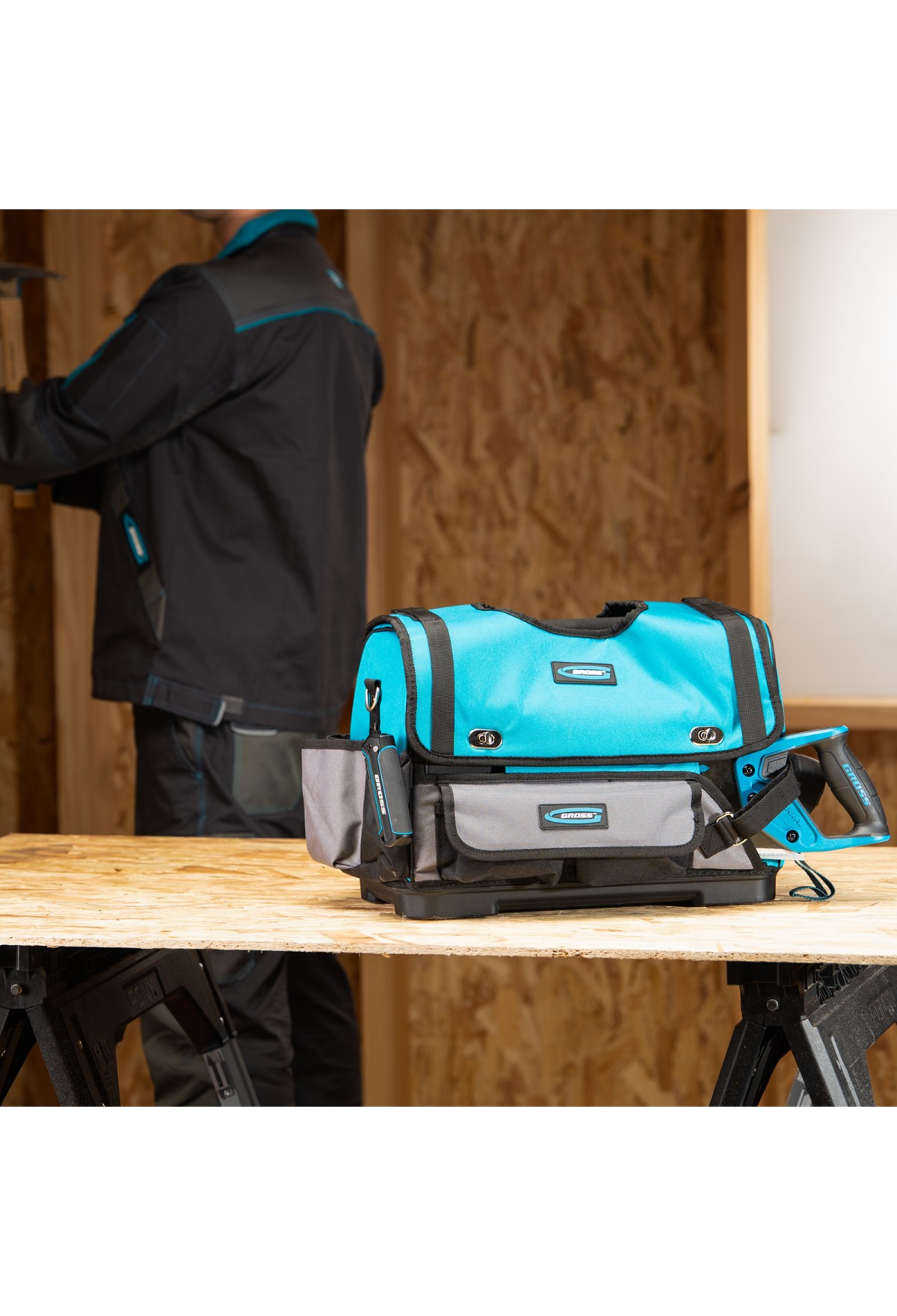 • Дополнительные возможности — в переноске предусмотрен отдельный карман для ножовки, а также зацеп для рулетки.