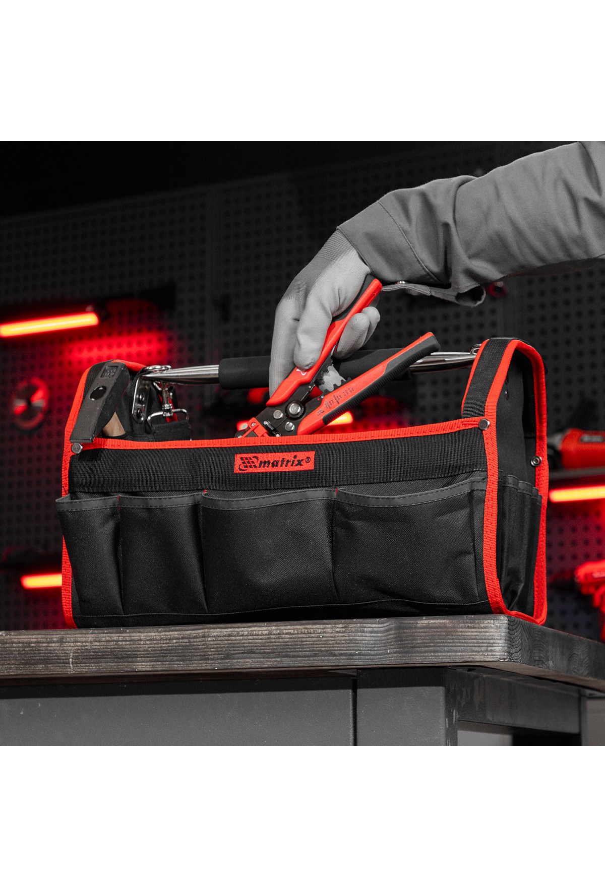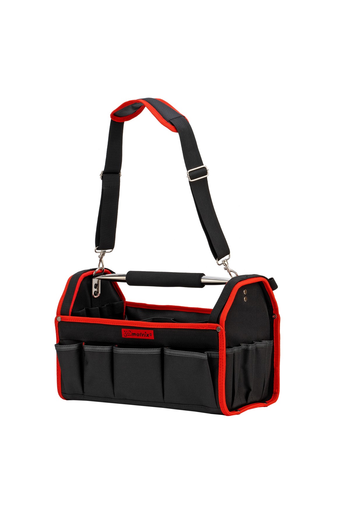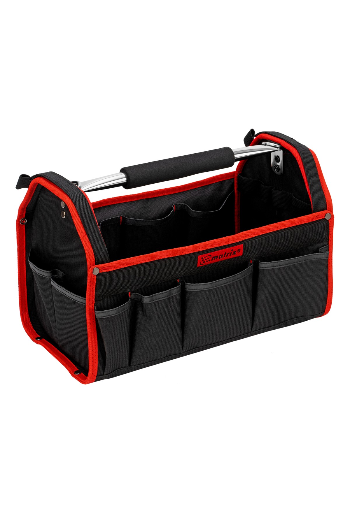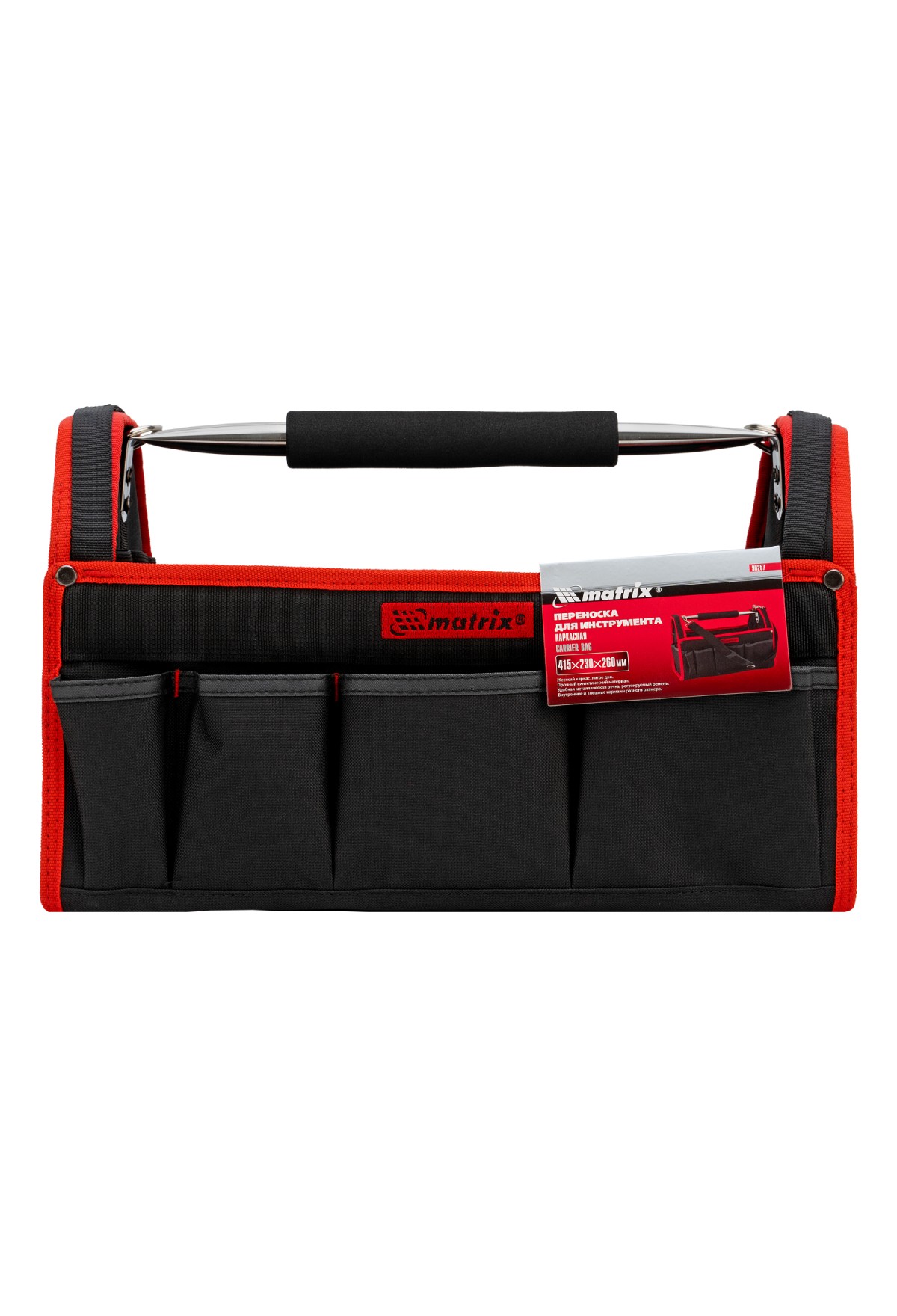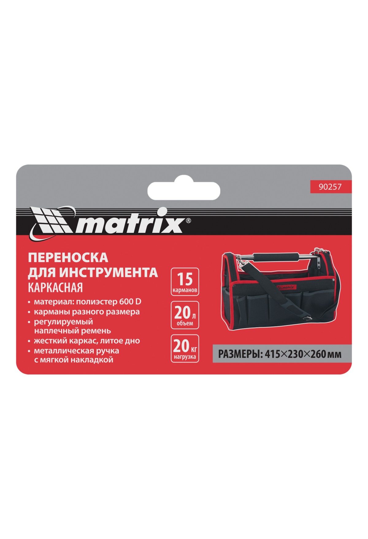 Каркасная переноска Matrix 90257 размером 415 х 230 х 260 мм удобна для перемещения и хранения инструментов. Имеет прочный каркас и весит 1,35 кг, ее легко переносить благодаря регулируемому плечевому ремню. В удобных карманах можно расположить все необходимые инструменты. Переноска пригодится дома, в гараже или в поездке.