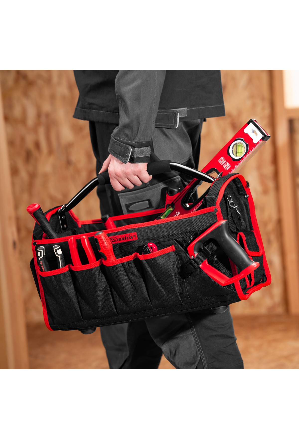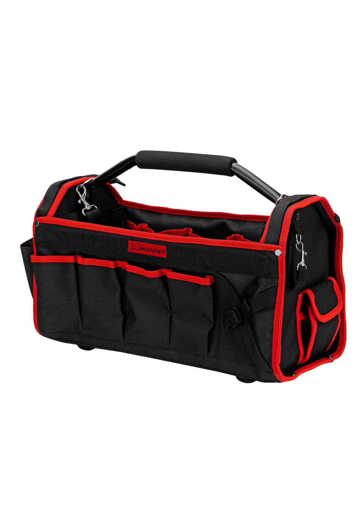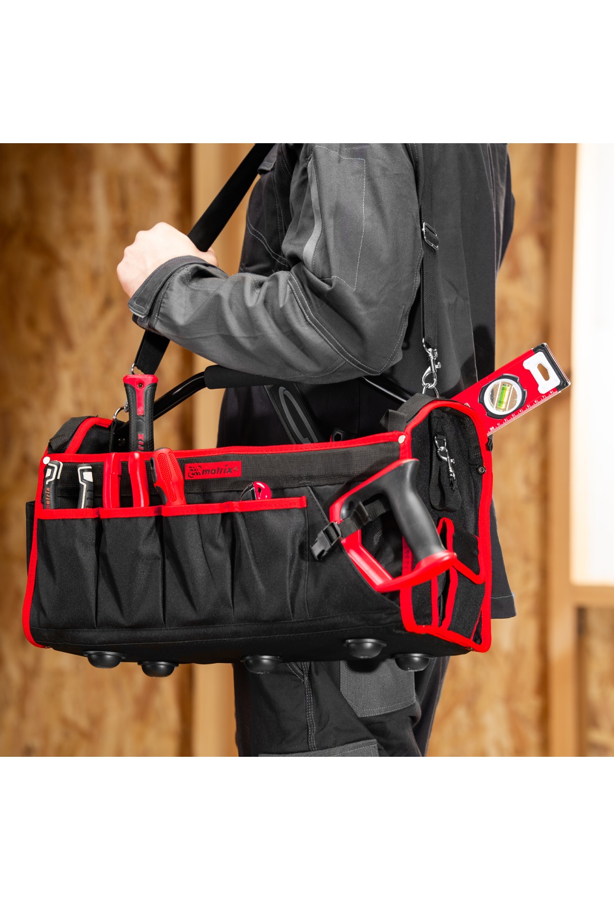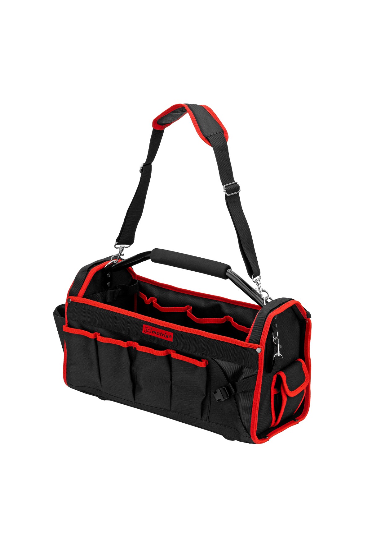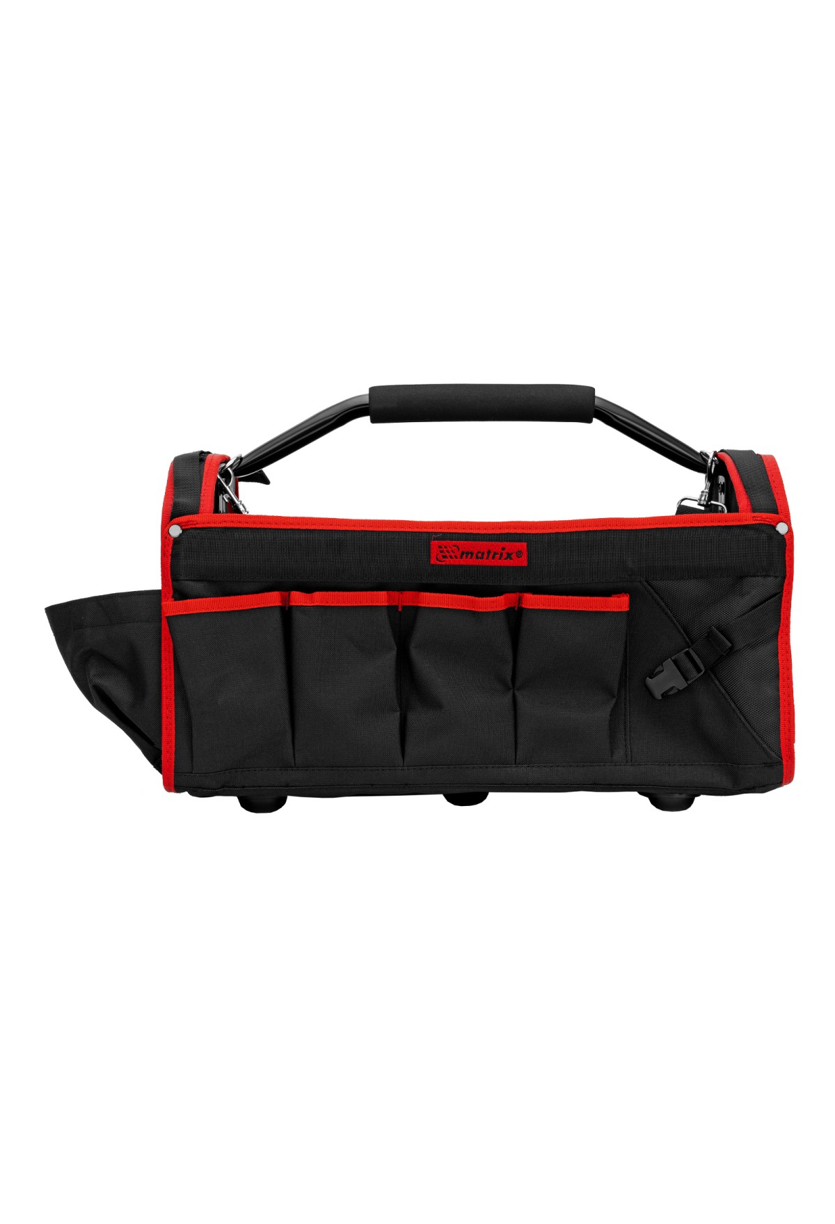 Каркасная переноска Matrix 90258 размером 490 х 230 х 280 мм удобна для перемещения и хранения инструментов. Имеет прочный каркас и весит 1,98 кг, ее легко транспортировать благодаря регулируемому плечевому ремню. В удобных карманах можно расположить все необходимые инструменты. Переноска пригодится дома, в гараже или в поездке.