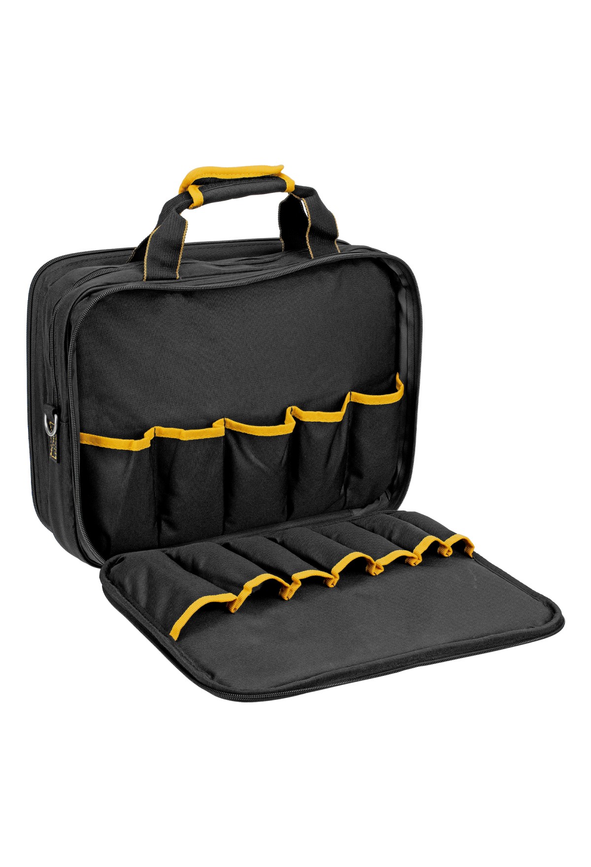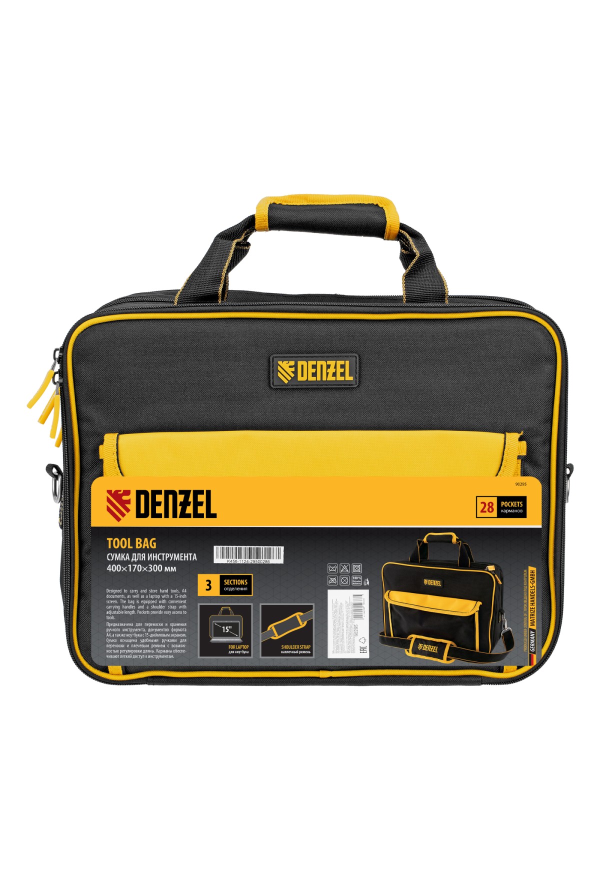 Технические характеристики Сумка для инструмента, 400х170х300 мм, 3 отделения, 28 карманов, наплечный ремень// Denzel