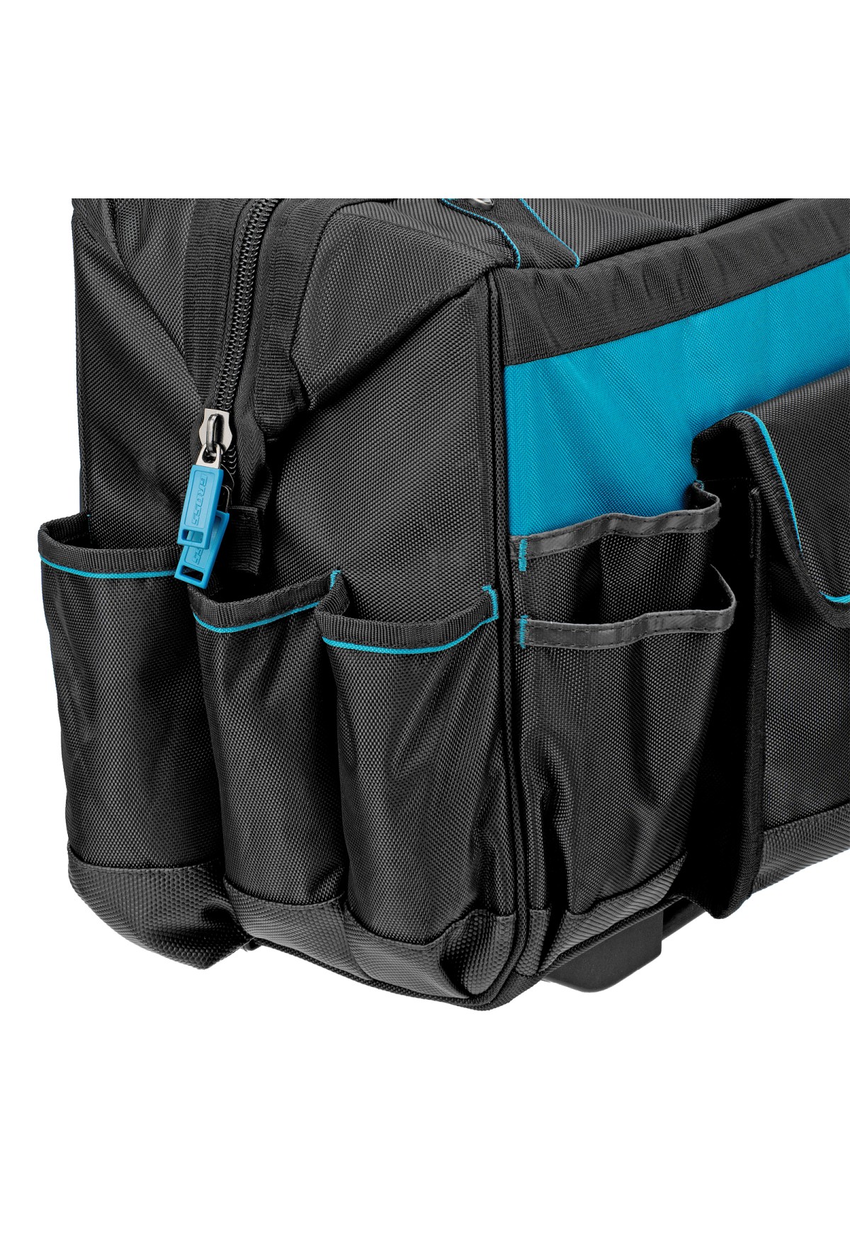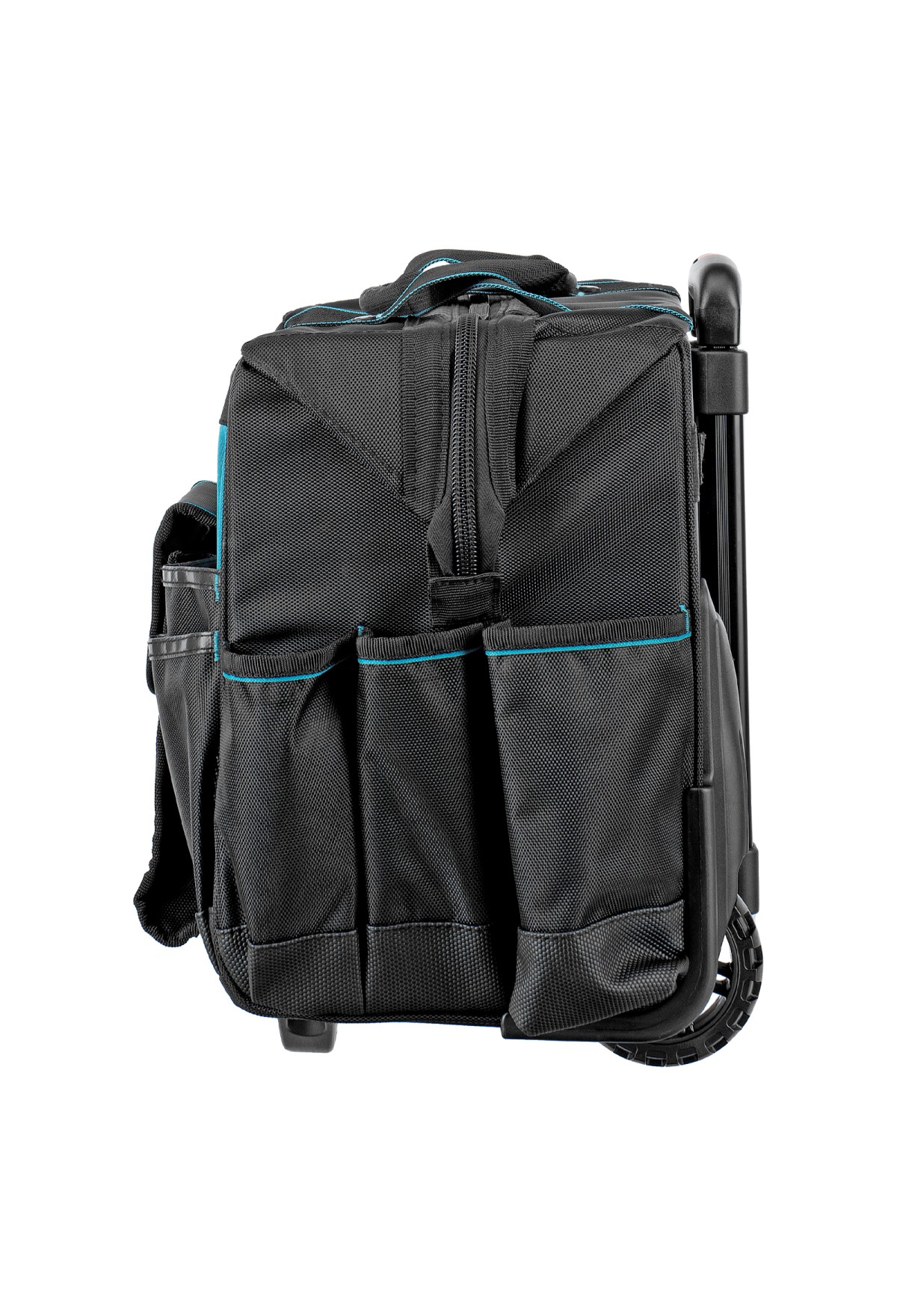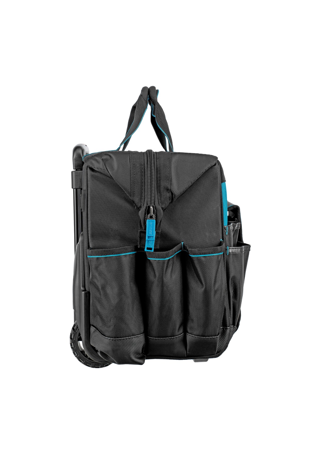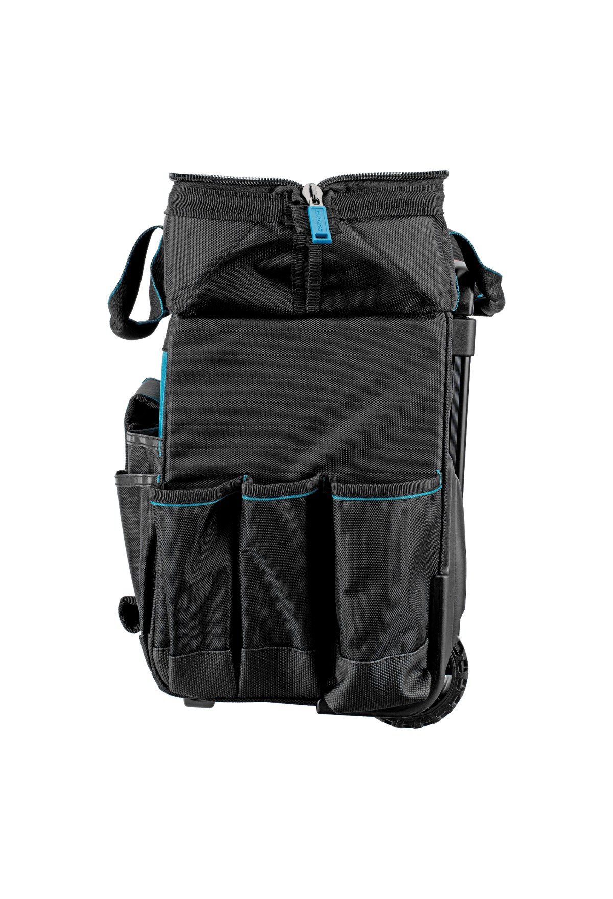 - Мобильность — сумку с инструментами легко перемещать при помощи колес и телескопической рукоятки.