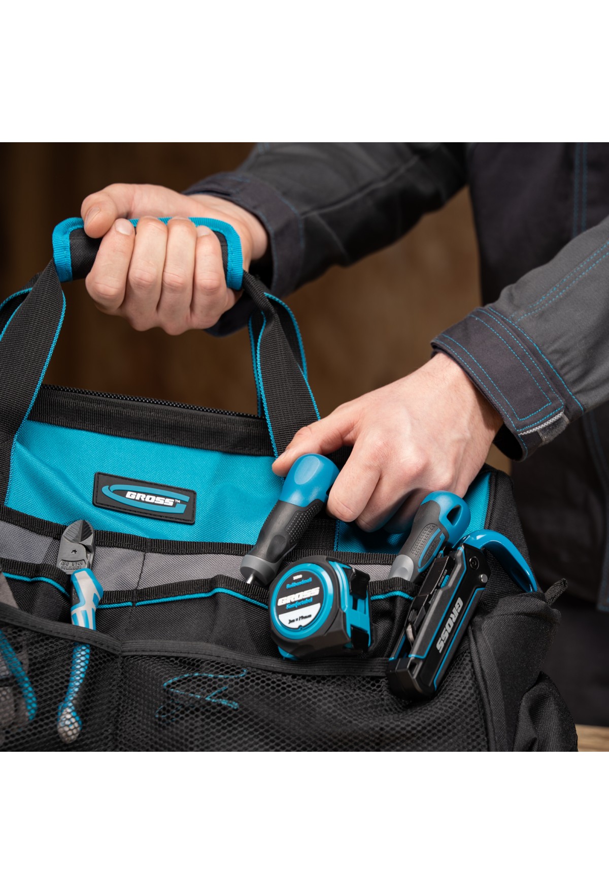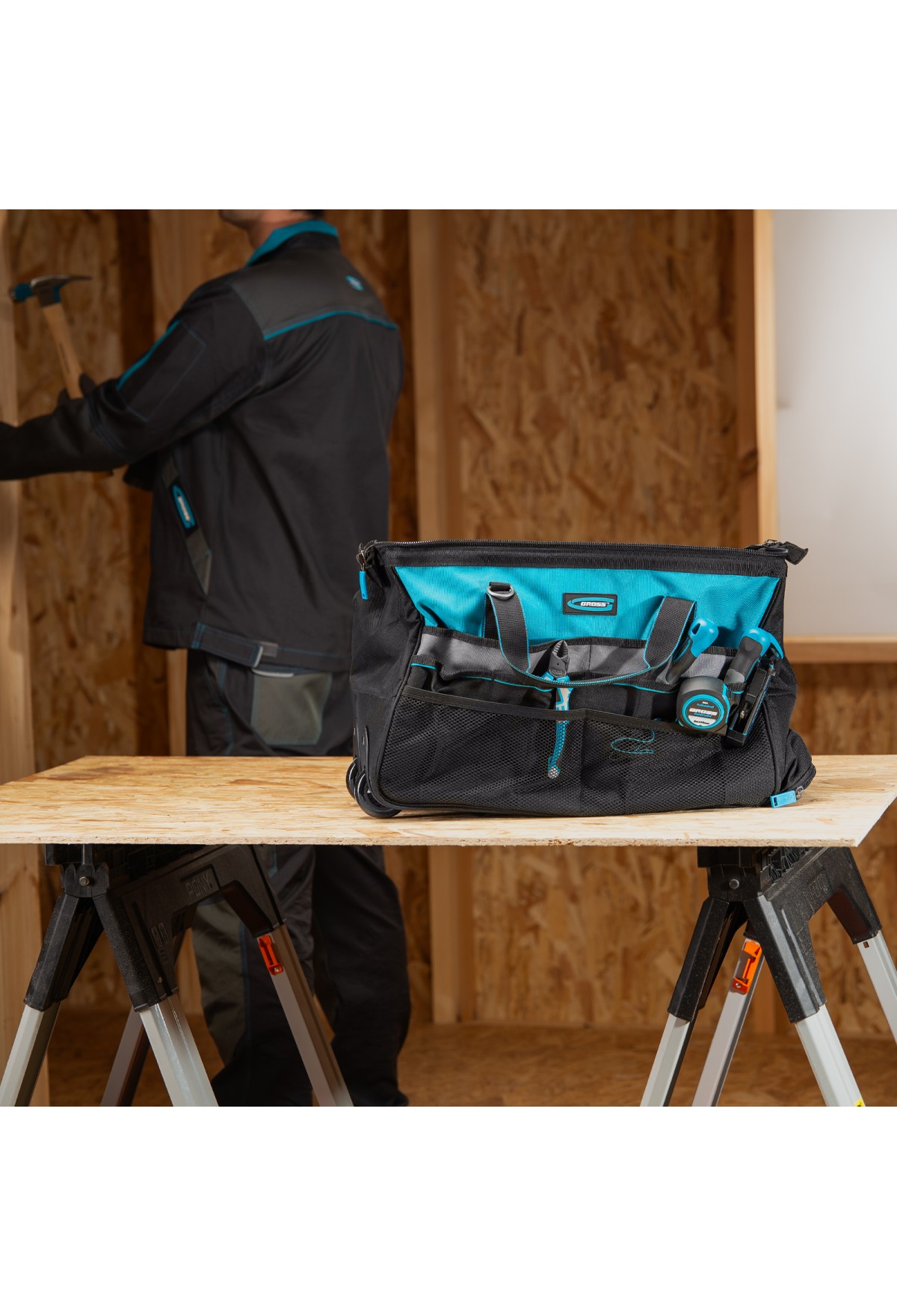 Сумка для инструмента, 500х280х290мм, выдвижная рукоятка, колеса, наплечный ремень// Gross