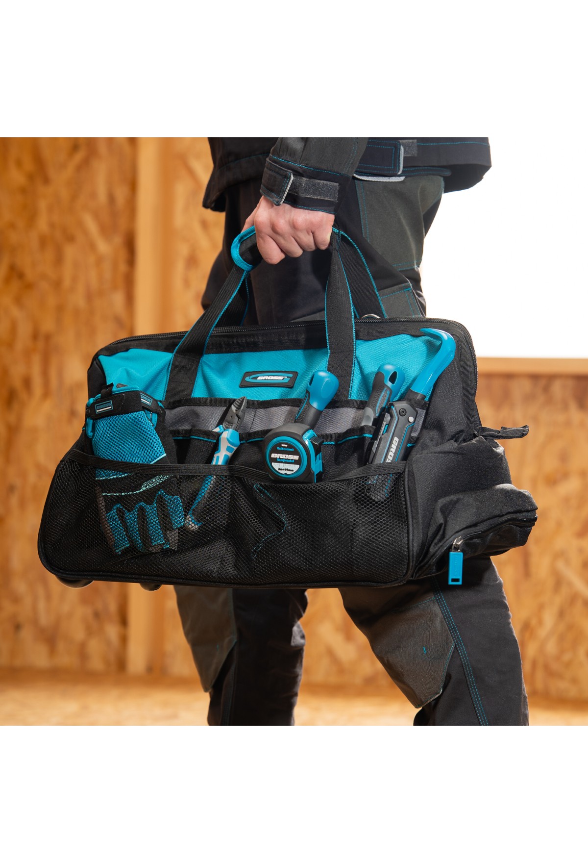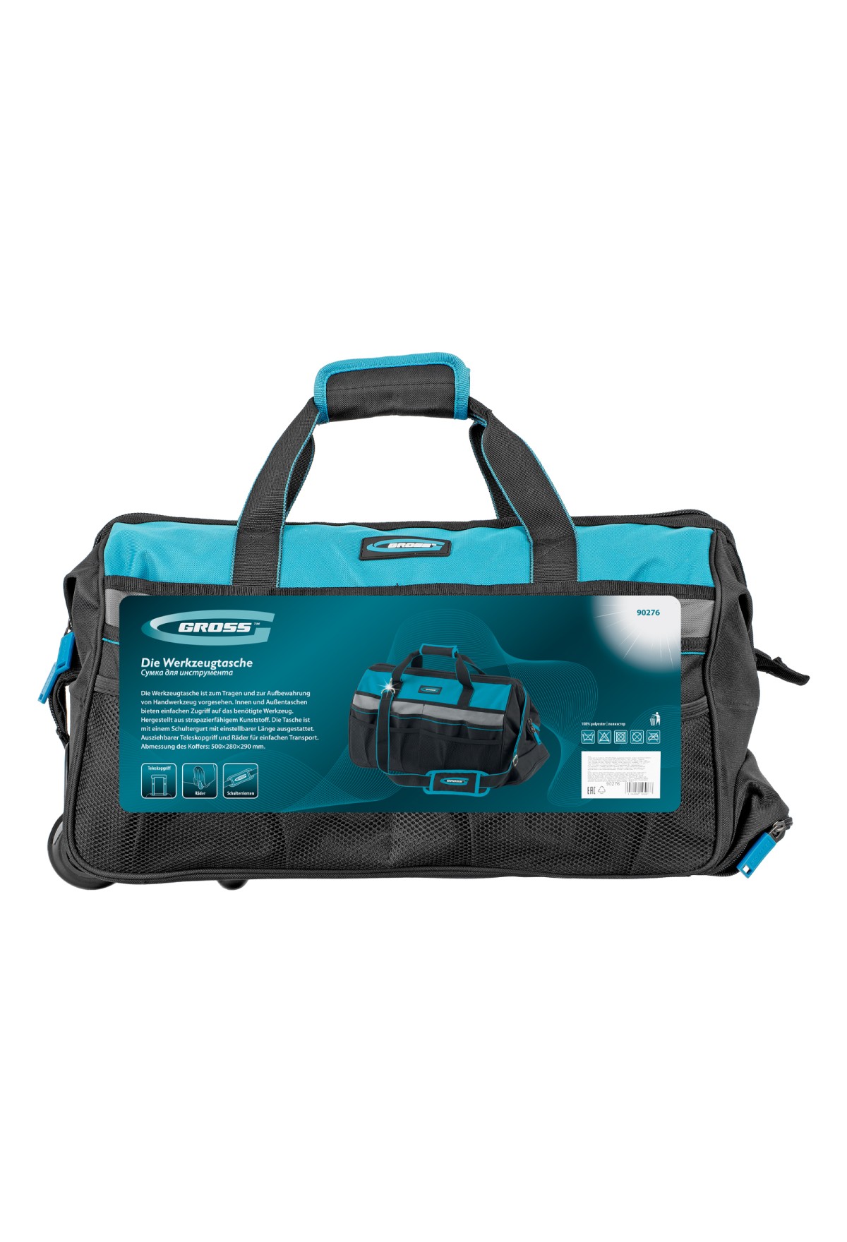 Технические характеристики Сумка для инструмента, 500х280х290мм, выдвижная рукоятка, колеса, наплечный ремень// Gross