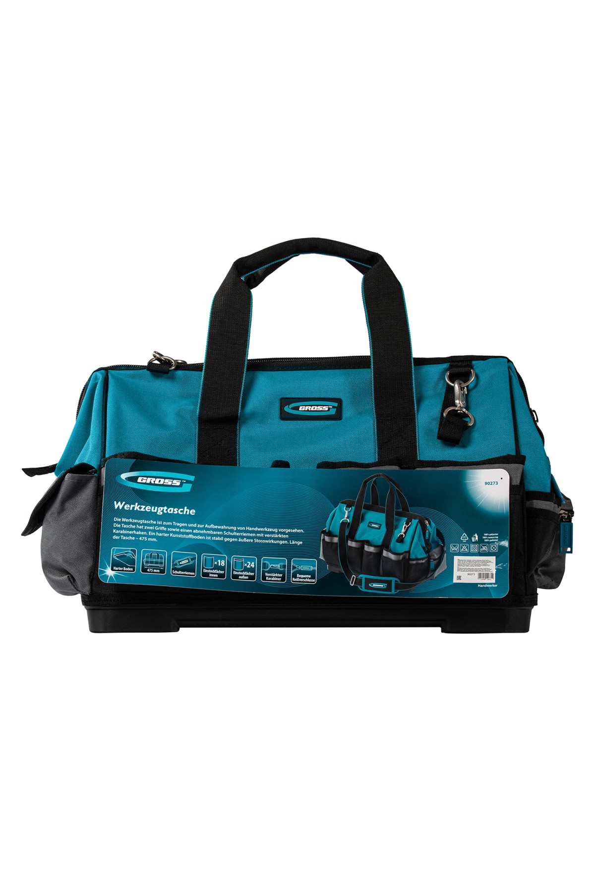 Сумка для инструмента Gross Handwerker 90273 размером 475 х 260 х 360 мм, с 42 карманами, пластиковым дном и наплечным ремнем, будет полезна слесарям, монтажникам, электрикам, а также автомобилистам. В основном отделении, внутренних и внешних карманах поместятся все необходимые инструменты.