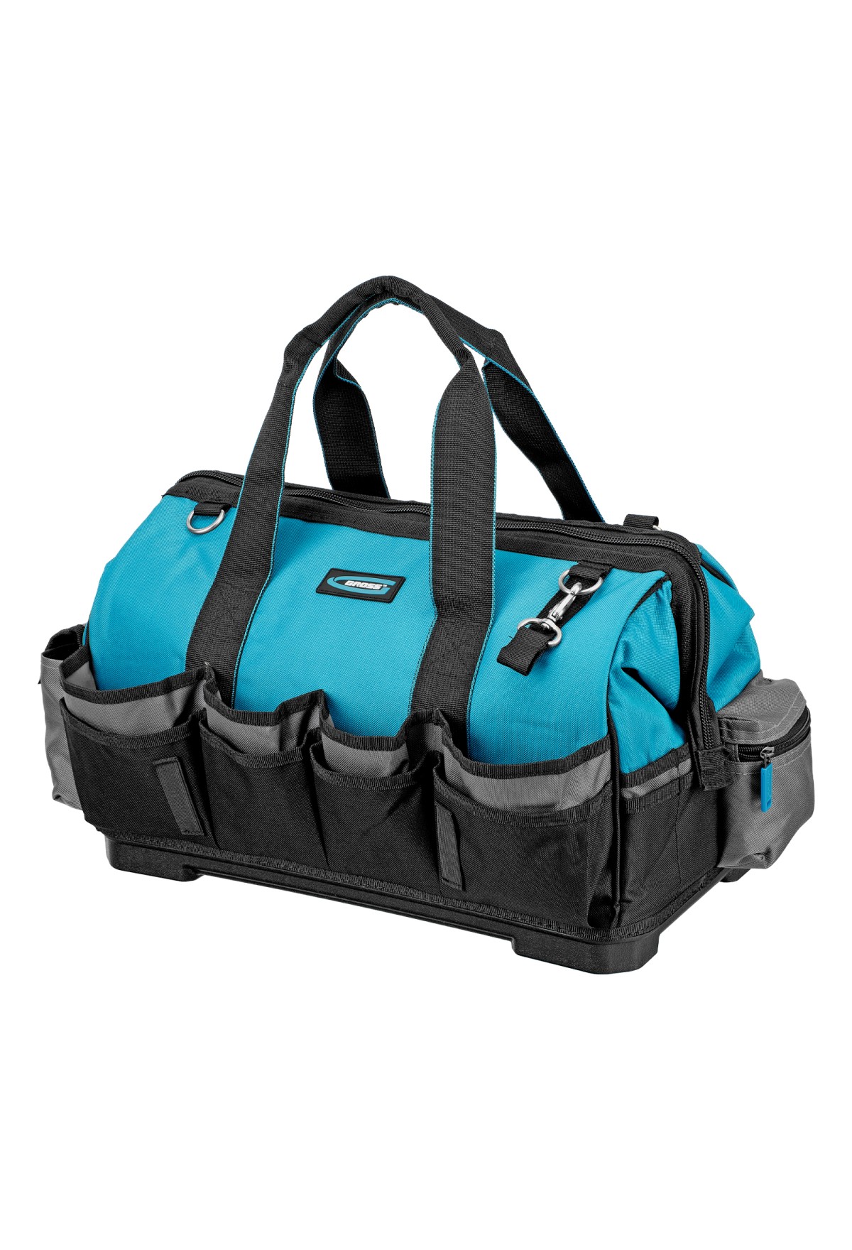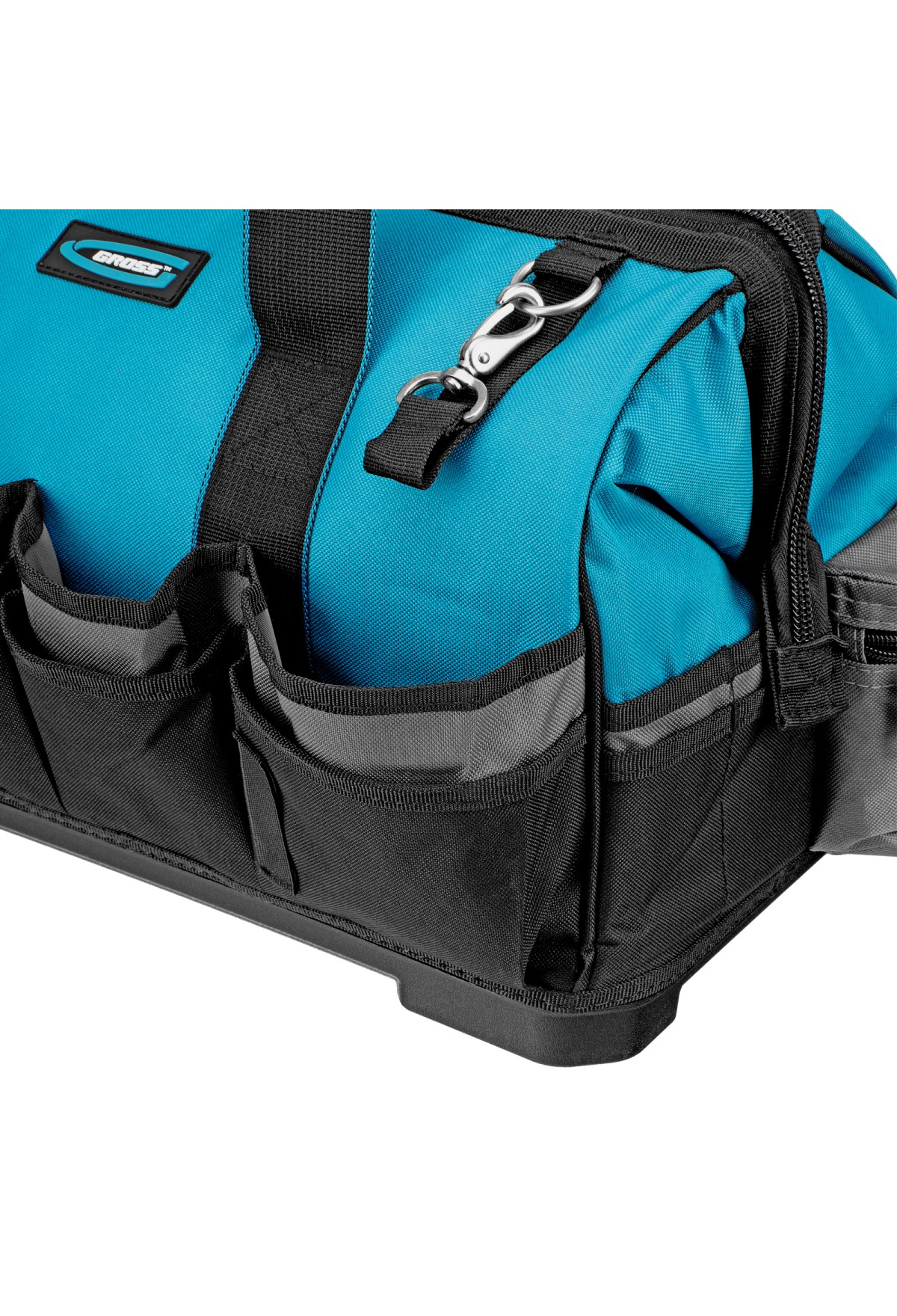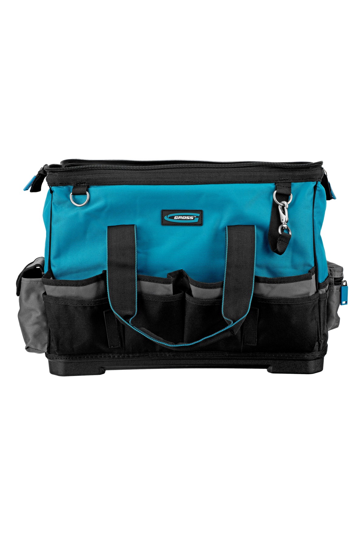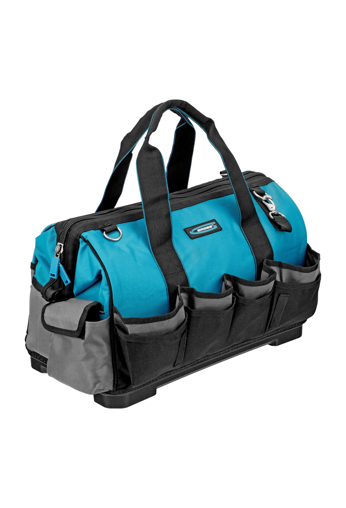 Сумка для инструмента Gross Handwerker 90273 размером 475 х 260 х 360 мм, с 42 карманами, пластиковым дном и наплечным ремнем, будет полезна слесарям, монтажникам, электрикам, а также автомобилистам. В основном отделении, внутренних и внешних карманах поместятся все необходимые инструменты.