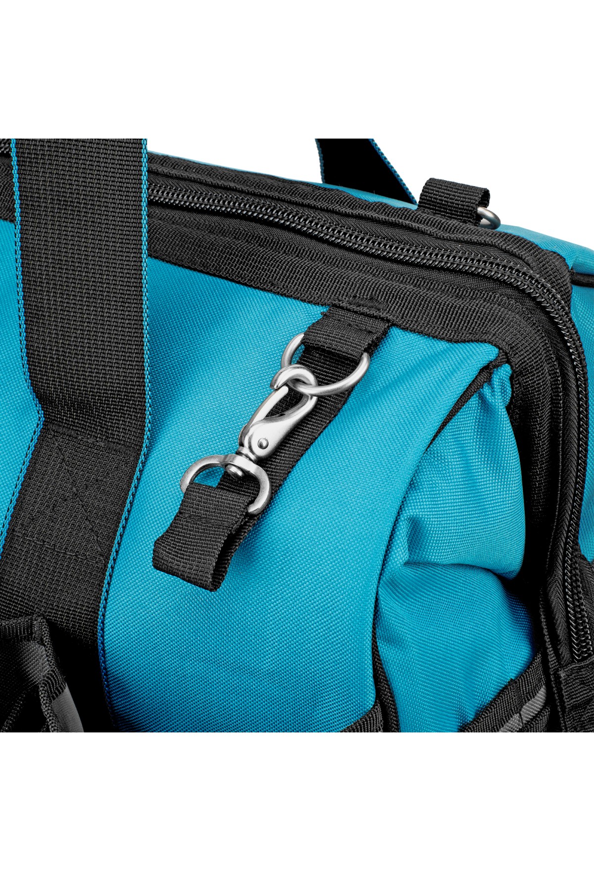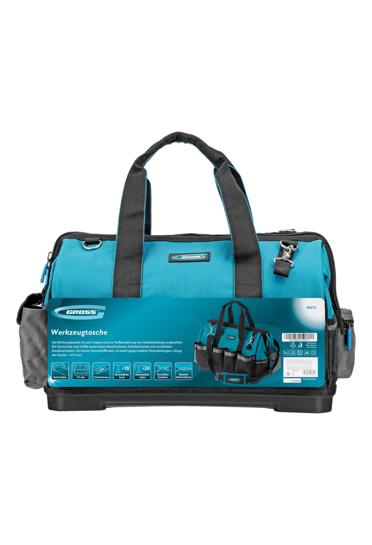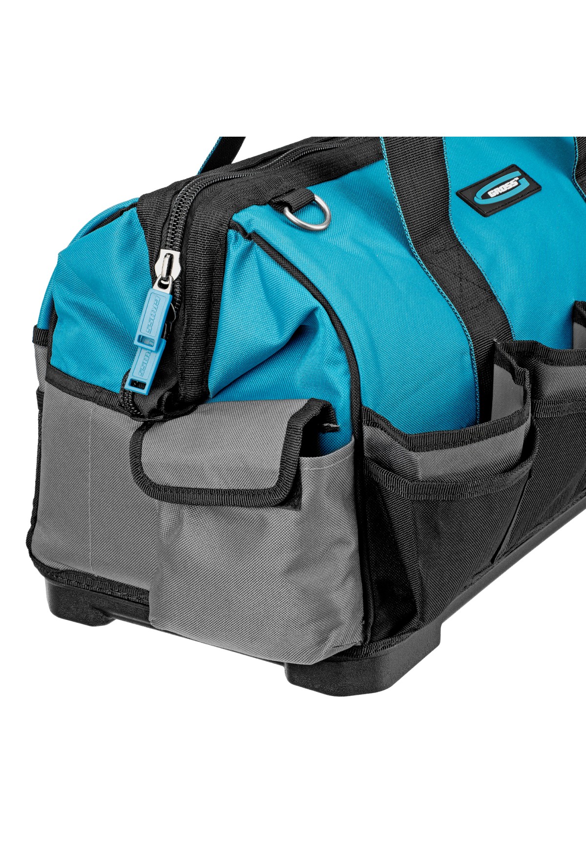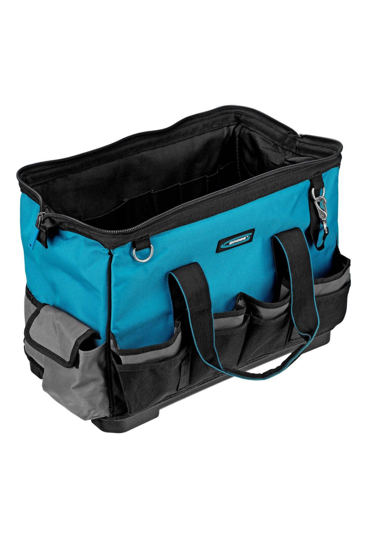 Сумка для инструмента Gross Handwerker 90273 размером 475 х 260 х 360 мм, с 42 карманами, пластиковым дном и наплечным ремнем, будет полезна слесарям, монтажникам, электрикам, а также автомобилистам. В основном отделении, внутренних и внешних карманах поместятся все необходимые инструменты.