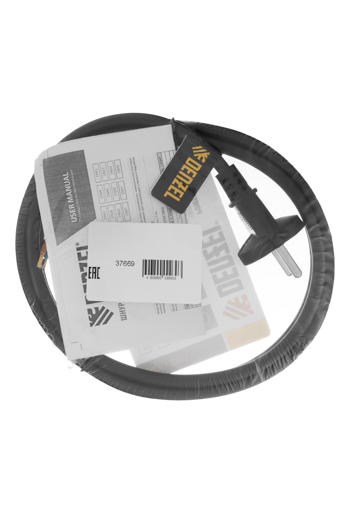 Черный сетевой шнур Denzel Energy Series 37669 с кабелем ПВС сечением 2 x 1,5 мм и длиной 1,5 м, с неразборной вилкой, предназначен для подключения к сети электроприборов мощностью до 3680 Вт. Для смотанного кабеля максимальная мощность потребителя составляет 1840 Вт. Шнур можно использовать для самостоятельного подключения прибора или замены вышедшего из строя провода. Сделано в России.