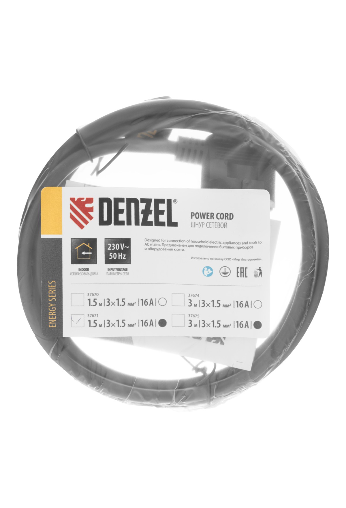 Тэги: Шнур сетевой Energy Series, ПВС, 1, 5 м, 3 x 1, 5 мм, с неразборной вилкой, черный, Denzel, VR6-37671, DENZEL, VR6, VR6-Прочий инструмент, VR6-Удлинители электрические