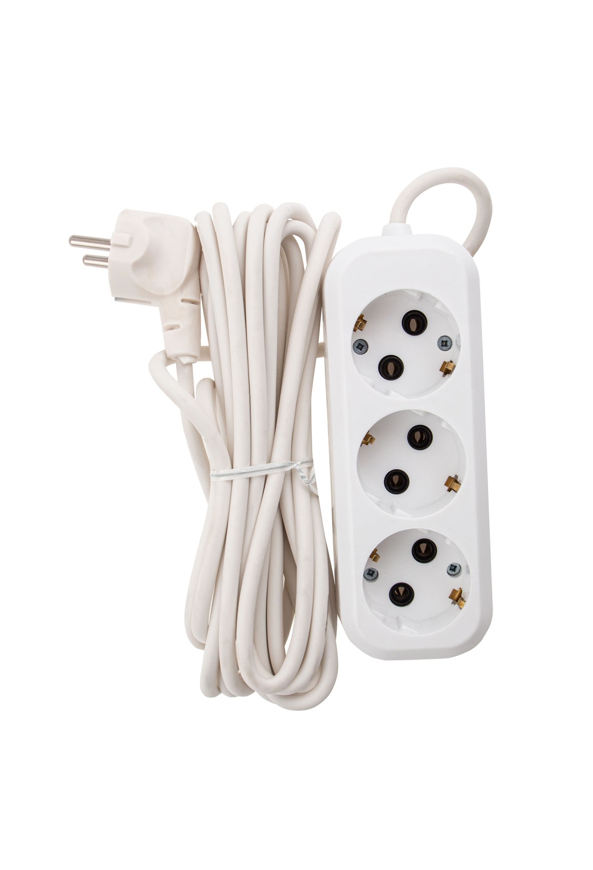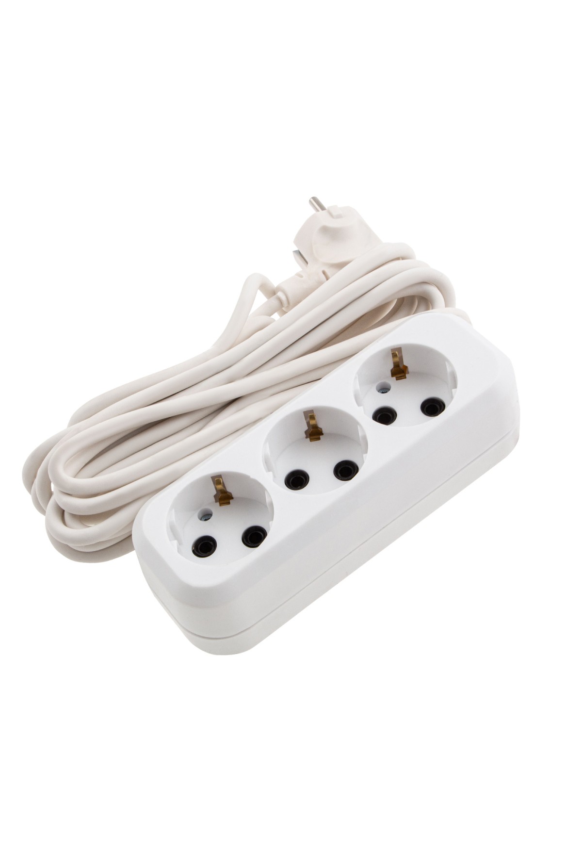Белый бытовой удлинитель Сибртех 96067, тип УХз-10, 10 А, с заземлением, имеет 3 розетки для подключения бытовых и осветительных приборов на расстоянии до 5 м от источника электроснабжения. Медный кабель рассчитан на нагрузку не более 2200 Вт. Удлинитель удобен для бытового применения.