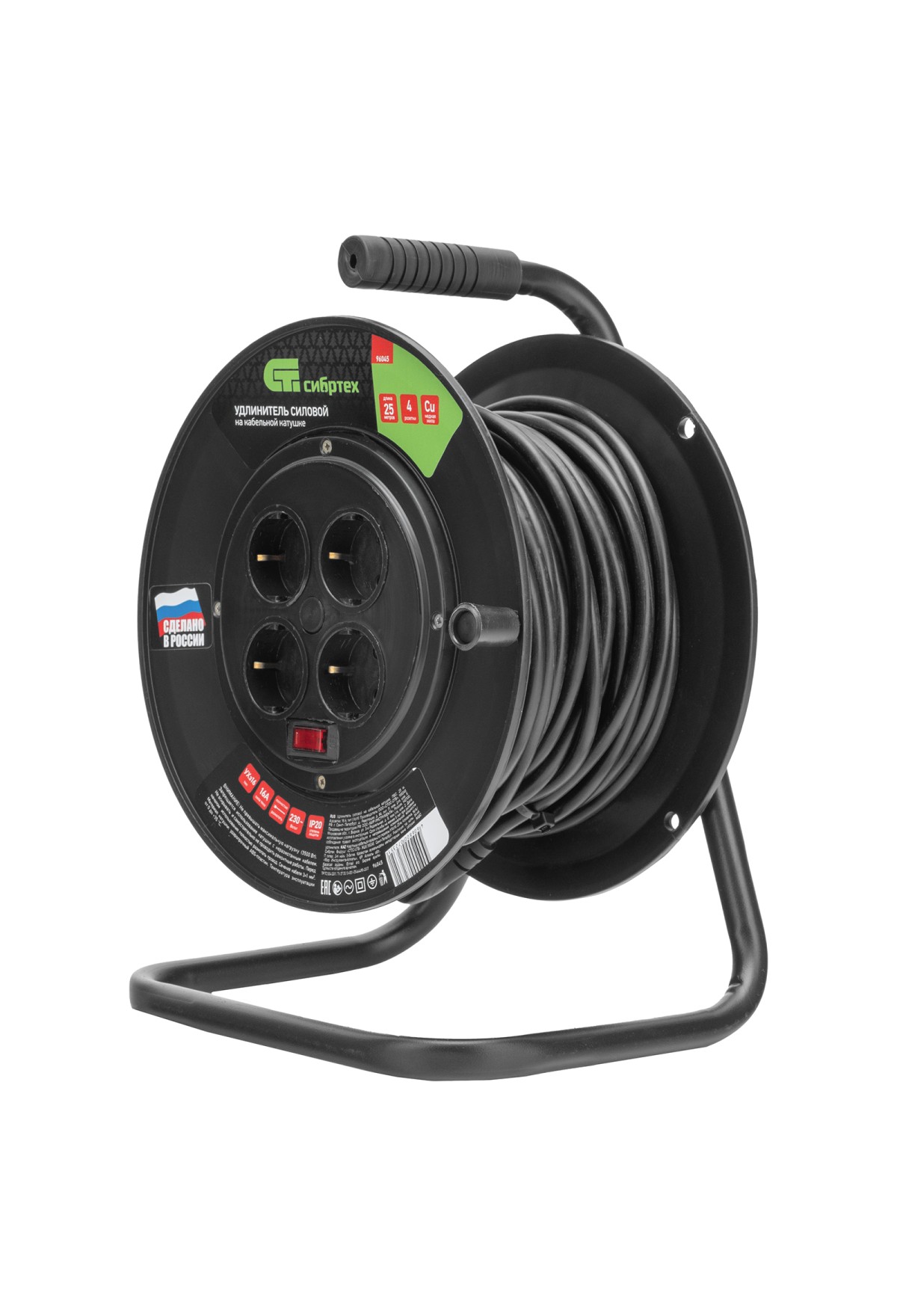 Удлинитель силовой 50 м, 16А, тип УХз16, ПВС 3 x 2.5 мм, на стальной катушке, 4 розетки Сибртех