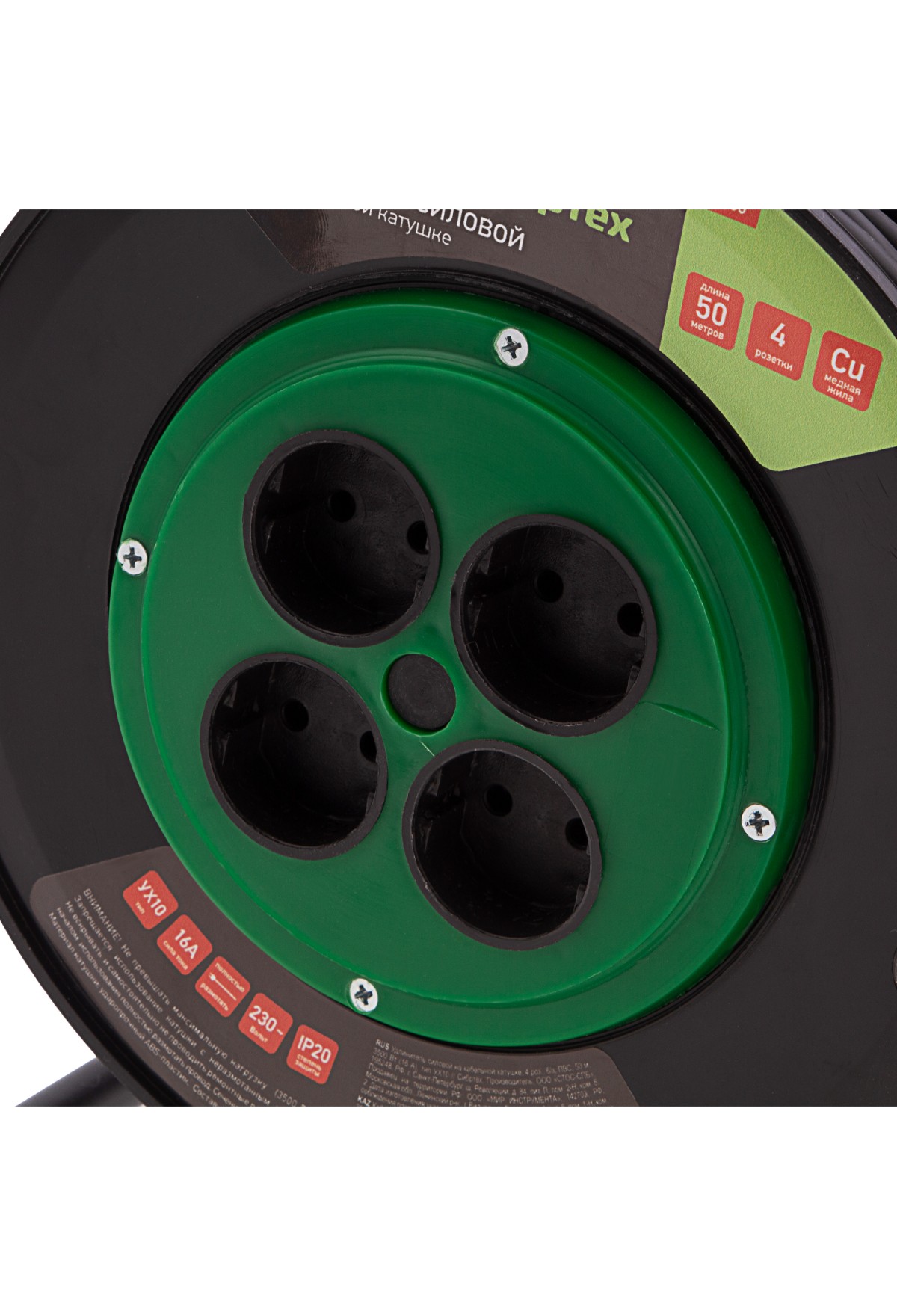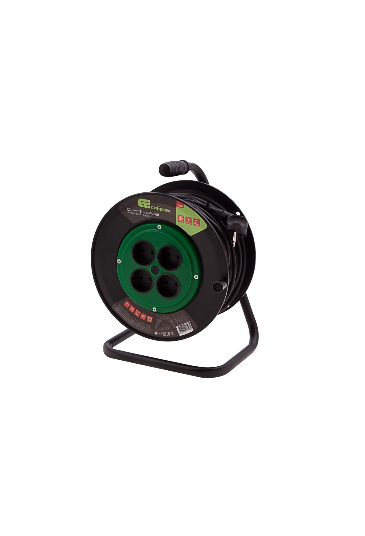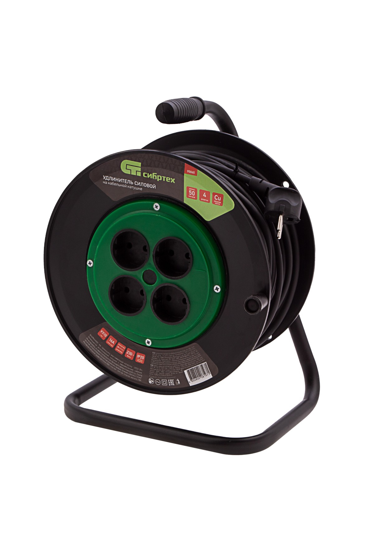 Силовой удлинитель Сибртех 95865 типа УХ10, 16 А, тип кабеля ПВС, на кабельной катушке, с 4 розетками, используется для подключения электроприборов на расстоянии до 50 м от стационарного источника электропитания. При этом суммарная мощность подключенных потребителей энергии не должна превышать 3500 Вт. Металлическая стойка сетевого удлинителя полая внутри, что облегчает конструкцию. Удлинитель пригодится во время строительных работ на дачном участке.