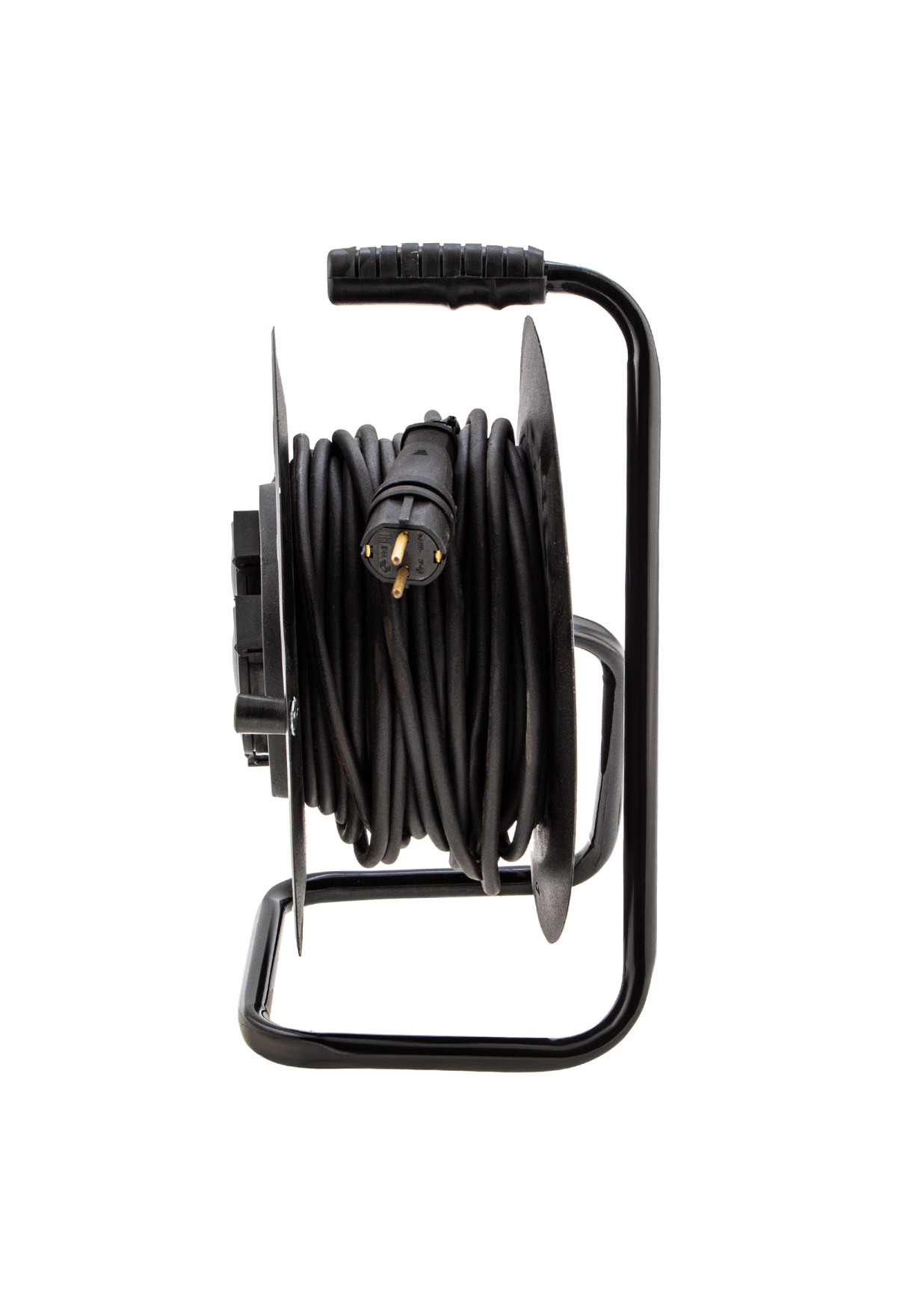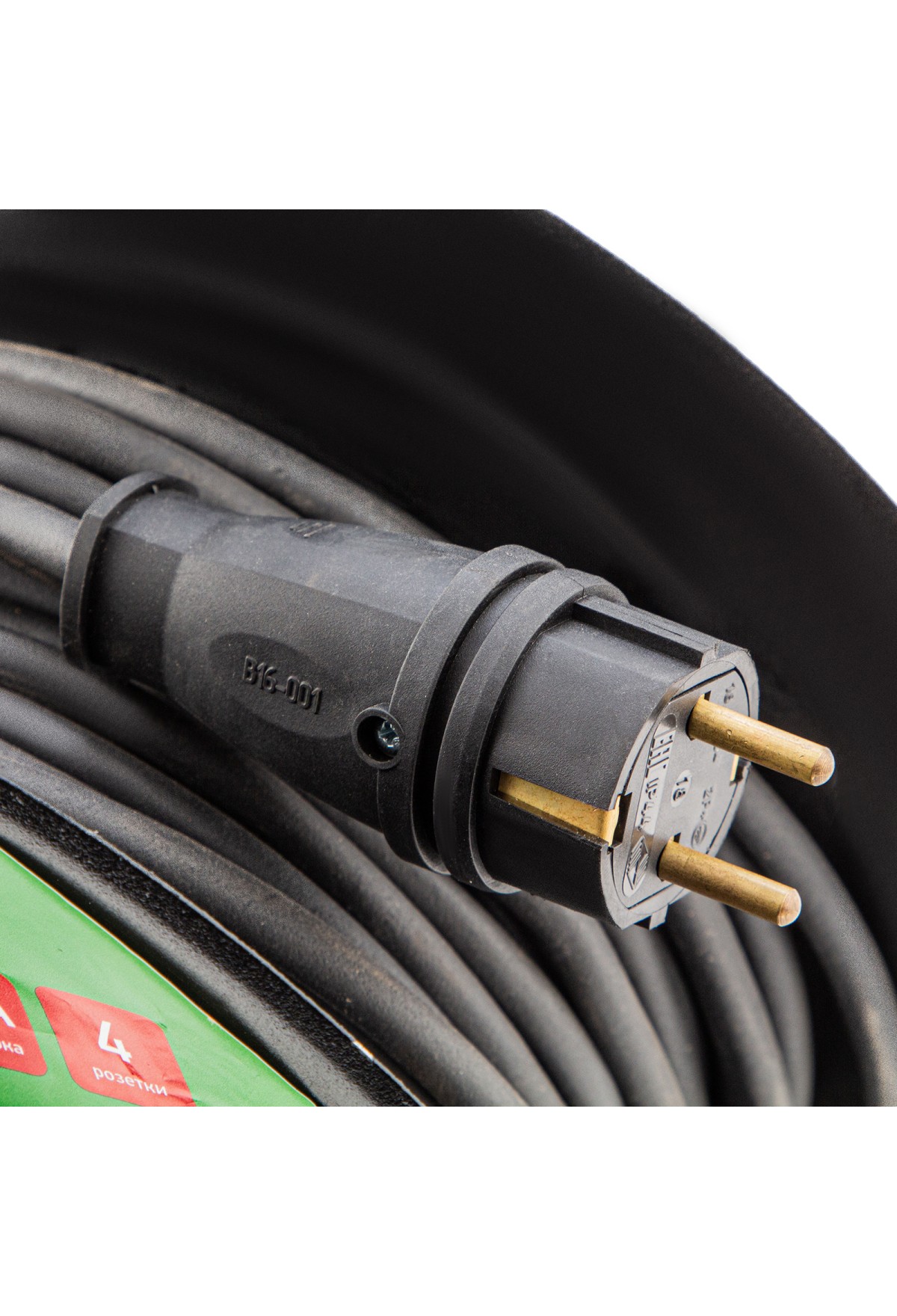 - Удобная эксплуатация — эргономичная рукоятка позволяет быстро разматывать и сматывать кабель.