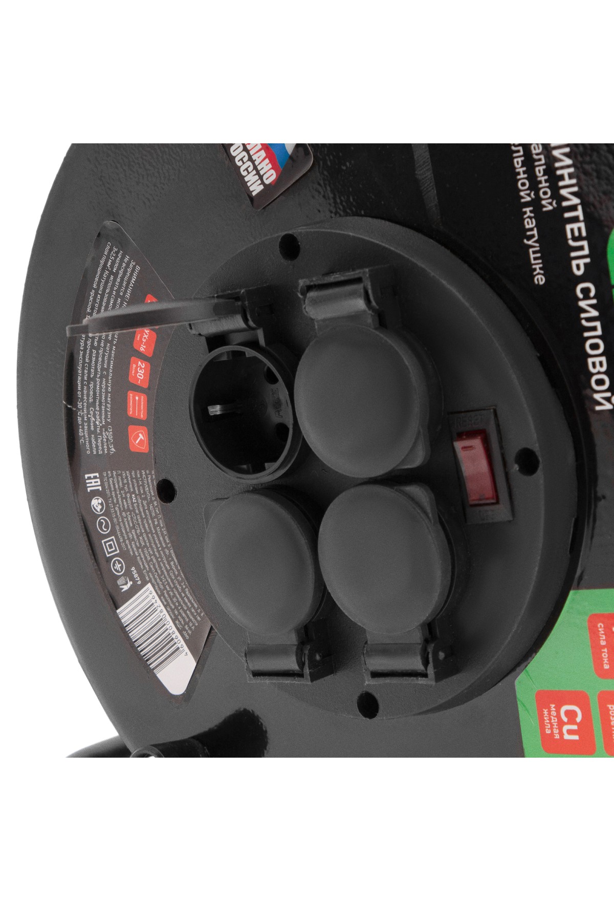 - Стальной корпус катушки покрыт порошковой эмалью, что обеспечивает защиту от коррозии и увеличивает срок службы удлинителя.
