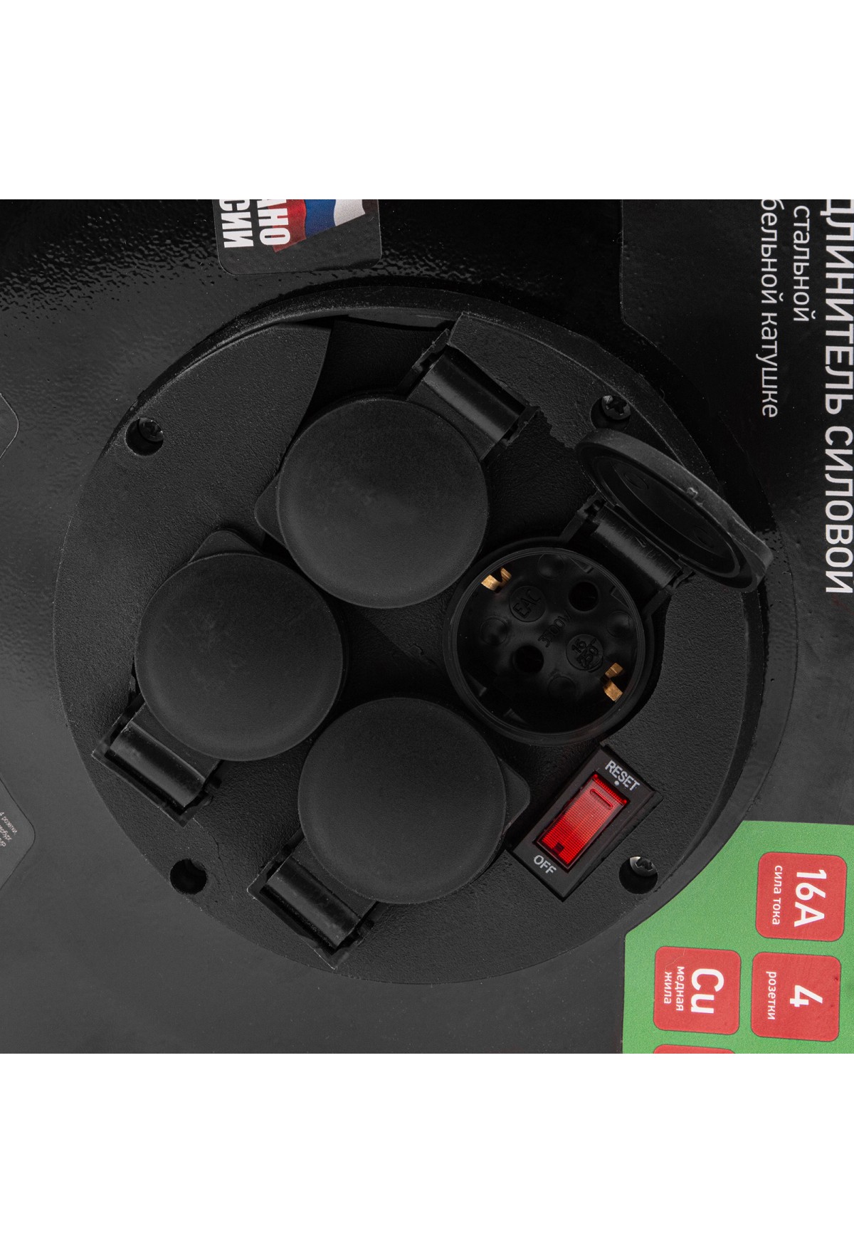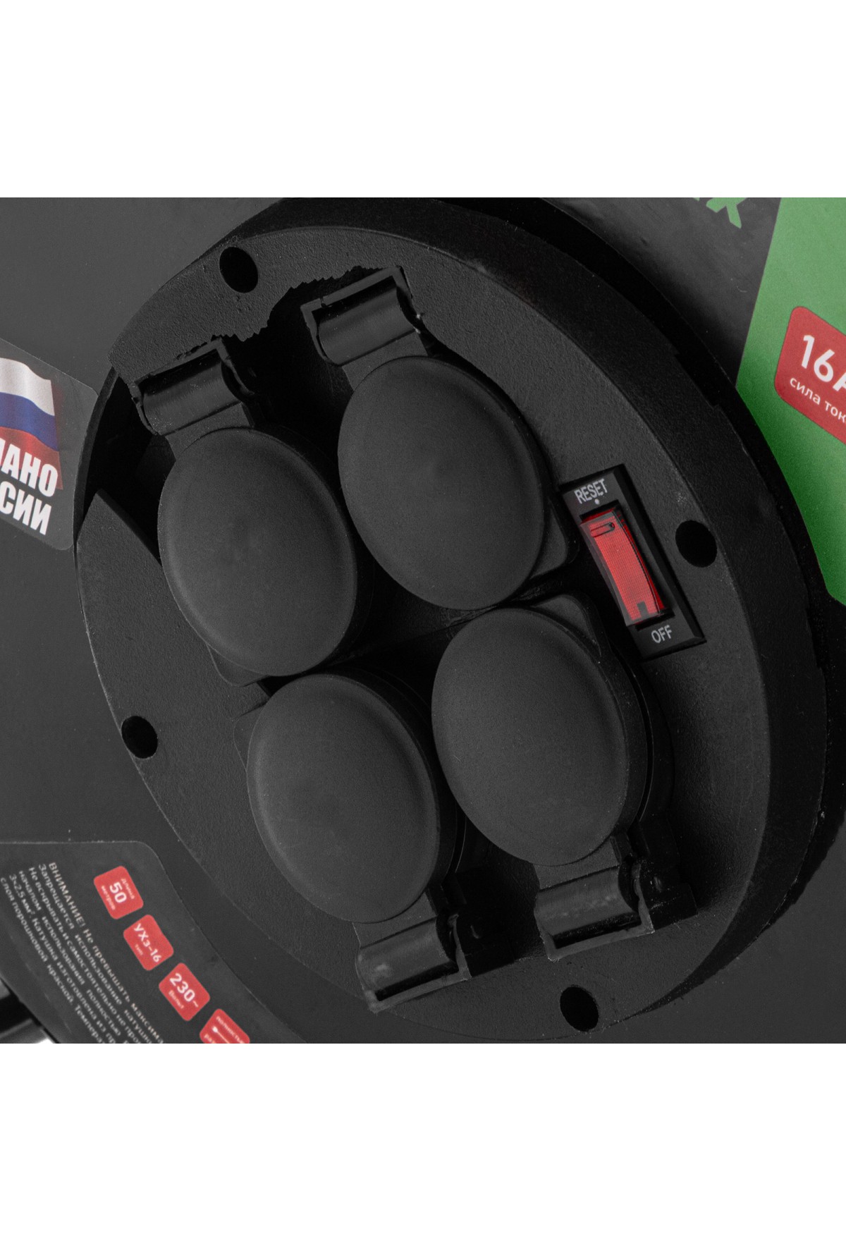 Технические характеристики Удлинитель силовой 50 м, 16А, тип УХз16, КГ 3 x 2.5 мм, на стальной катушке, 4 розетки Сибртех