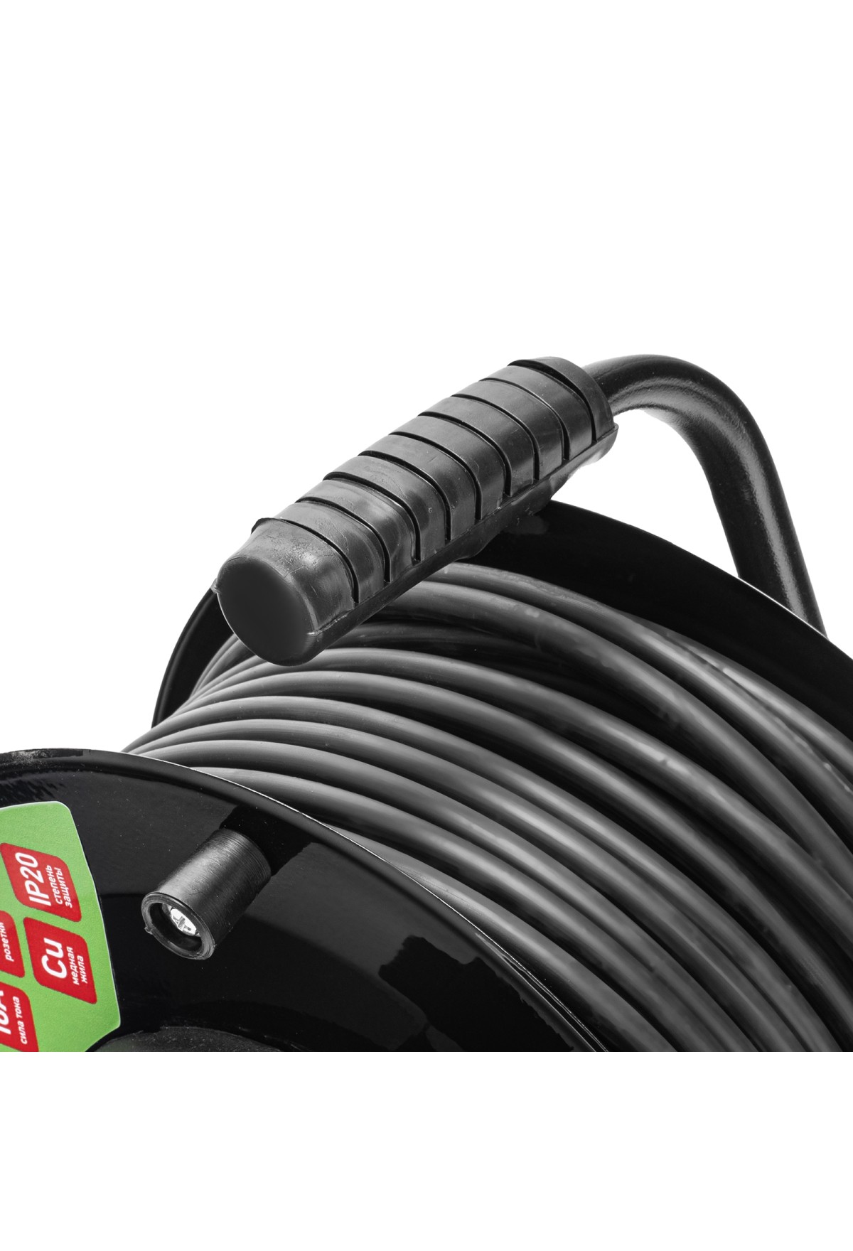 Нет в наличии Код товара: VR6-96048 Удлинитель силовой на кабельной катушке, ПВС, 50 м, 4 розетки с крышкой, IP44, 16А, УХз16, Сибртех
