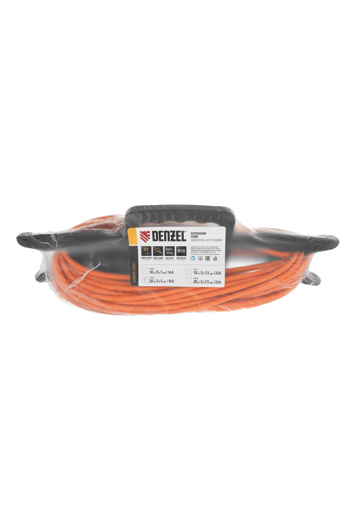 Силовой удлинитель-шнур Denzel Garden Series 37406 с кабелем ПВС сечением 3 x 1 мм и 1 розеткой, позволяет подключать приборы к электросети на расстоянии до 20 м от стационарного источника питания. Максимальная мощность потребителя составляет 3500 Вт при полностью размотанном кабеле и 1750 Вт — при смотанном. Удлинитель может использоваться при температуре от +5 до +35 °C. Пригодится дома, на даче, в гараже.