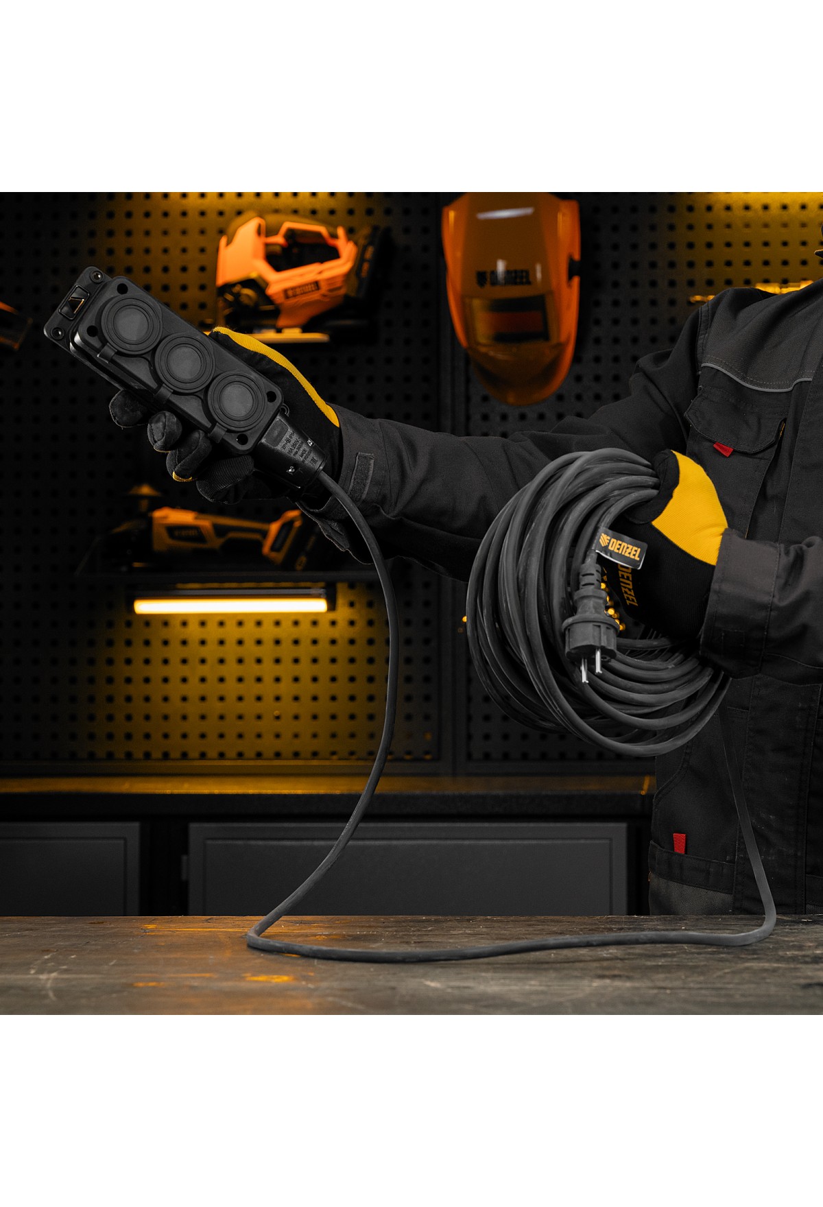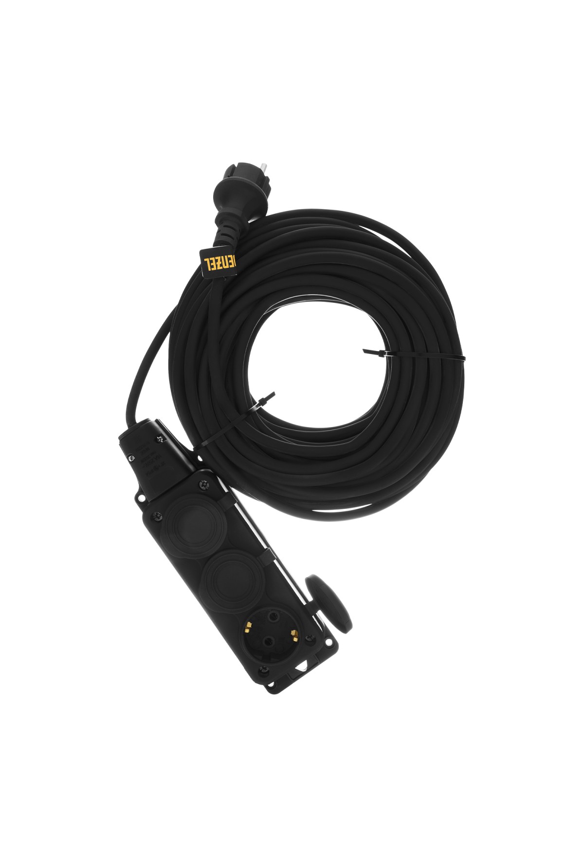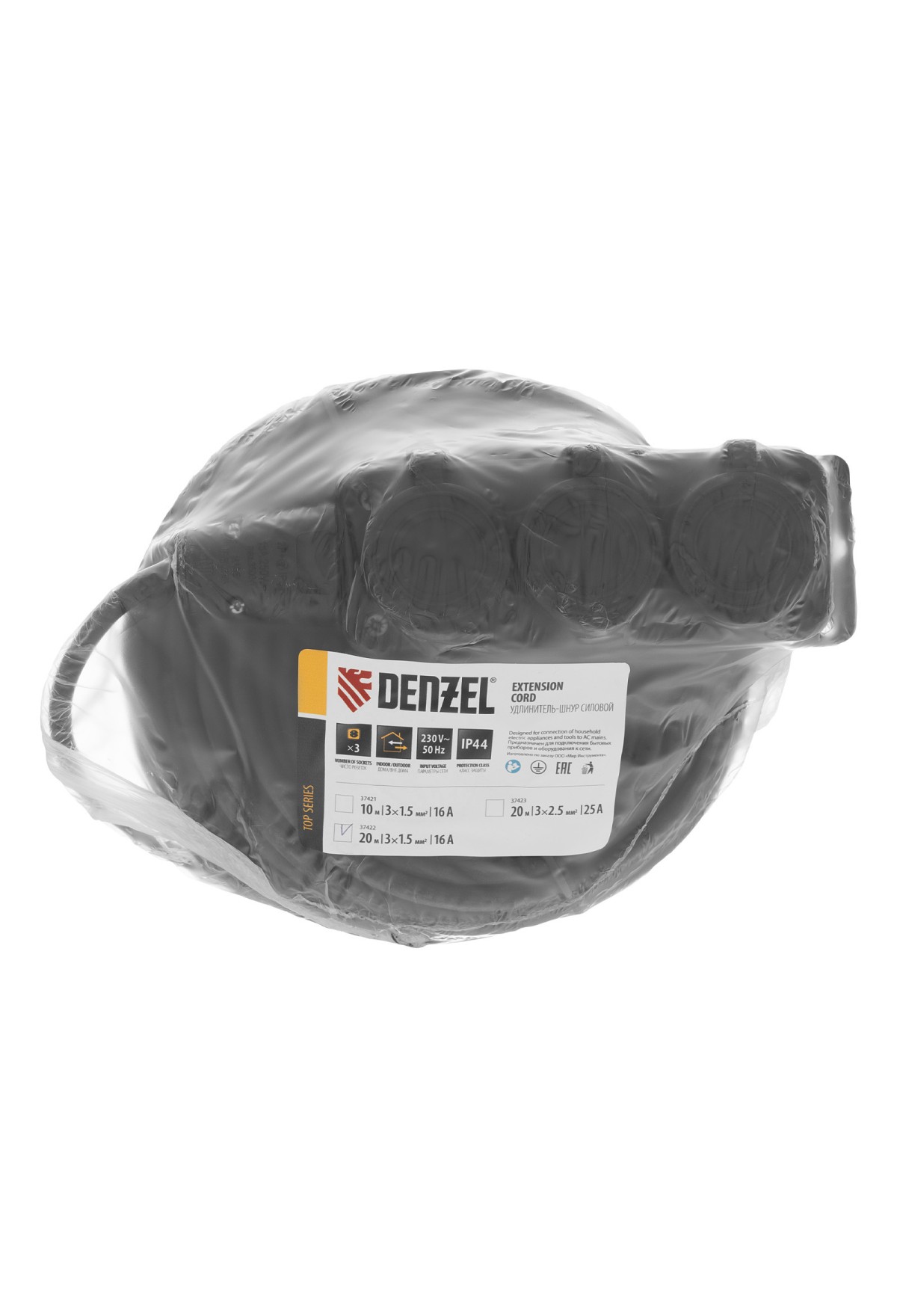 Силовой удлинитель-шнур Denzel Top Series 37422 с 3 розетками, с кабелем КГТТ сечением 3 x 1,5 мм и длиной 20 м, предназначен для подключения электроприборов на удалении от розетки. Суммарная мощность потребителей составляет 3680 Вт для полностью размотанного кабеля и 1840 Вт — для смотанного. Удлинитель подходит для подключения электроинструмента, будет полезен на строительной площадке и в быту.