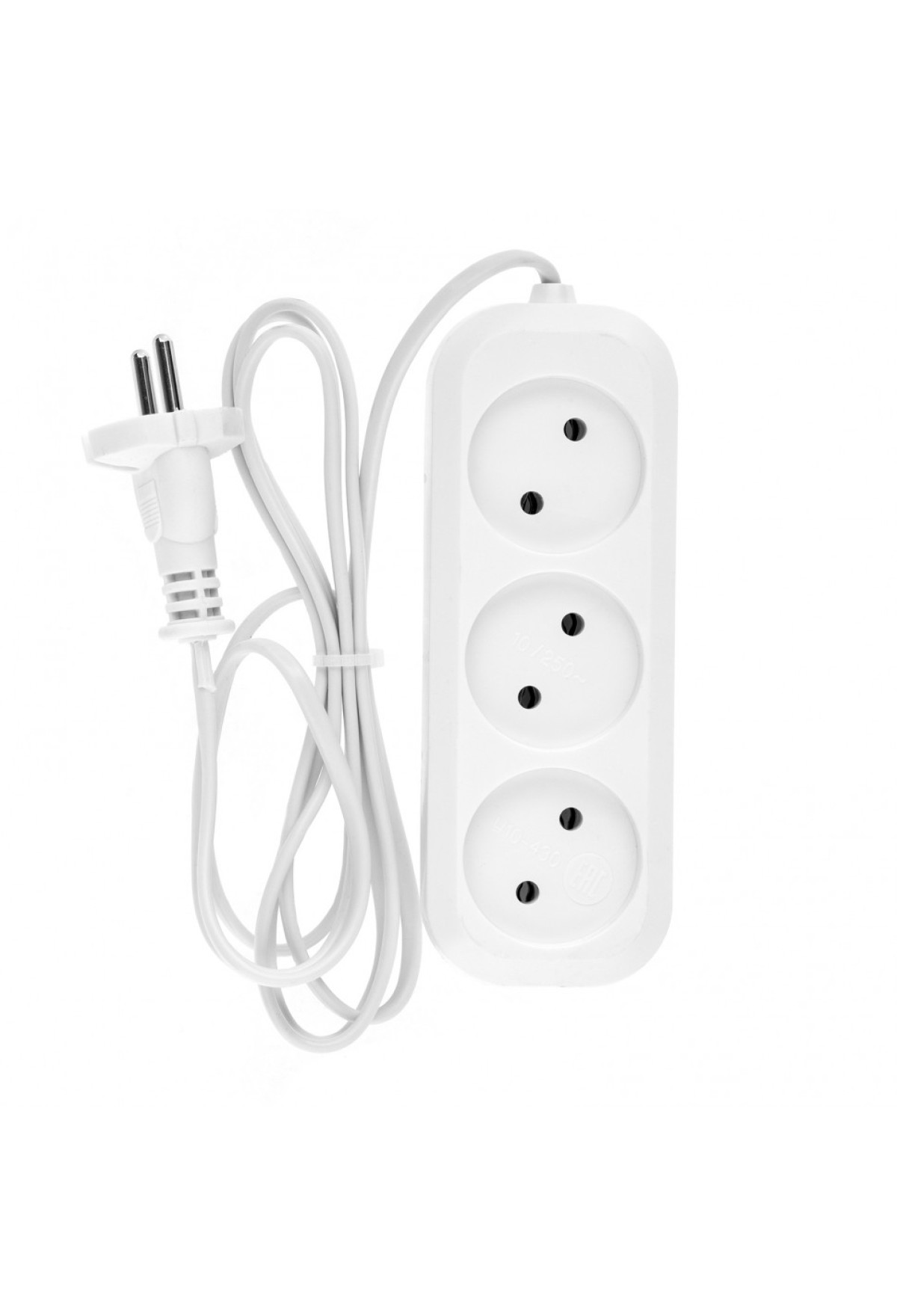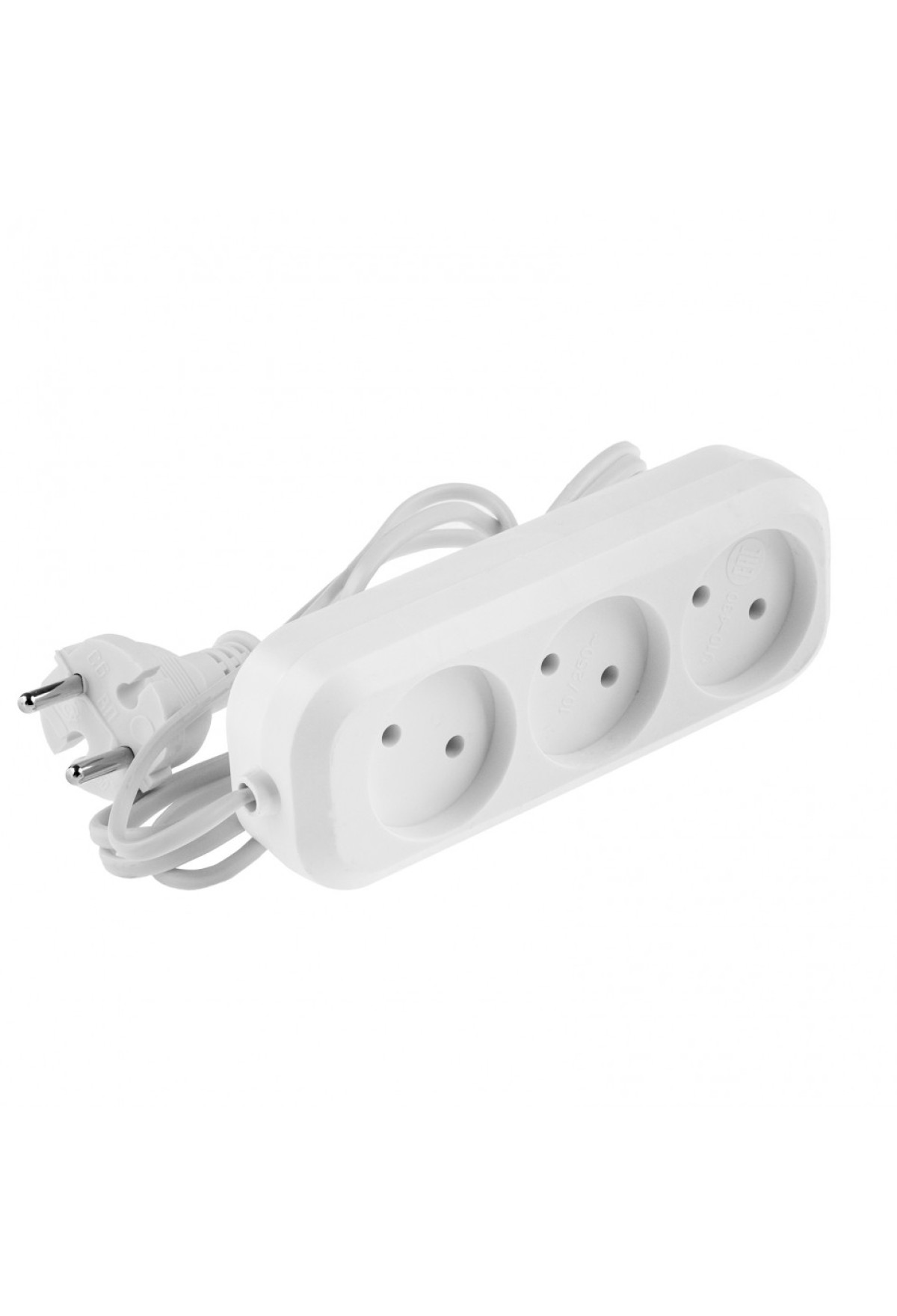 - Корпус удлинителя изготовлен из белого пластика, устойчивого к механическому воздействию и износу.