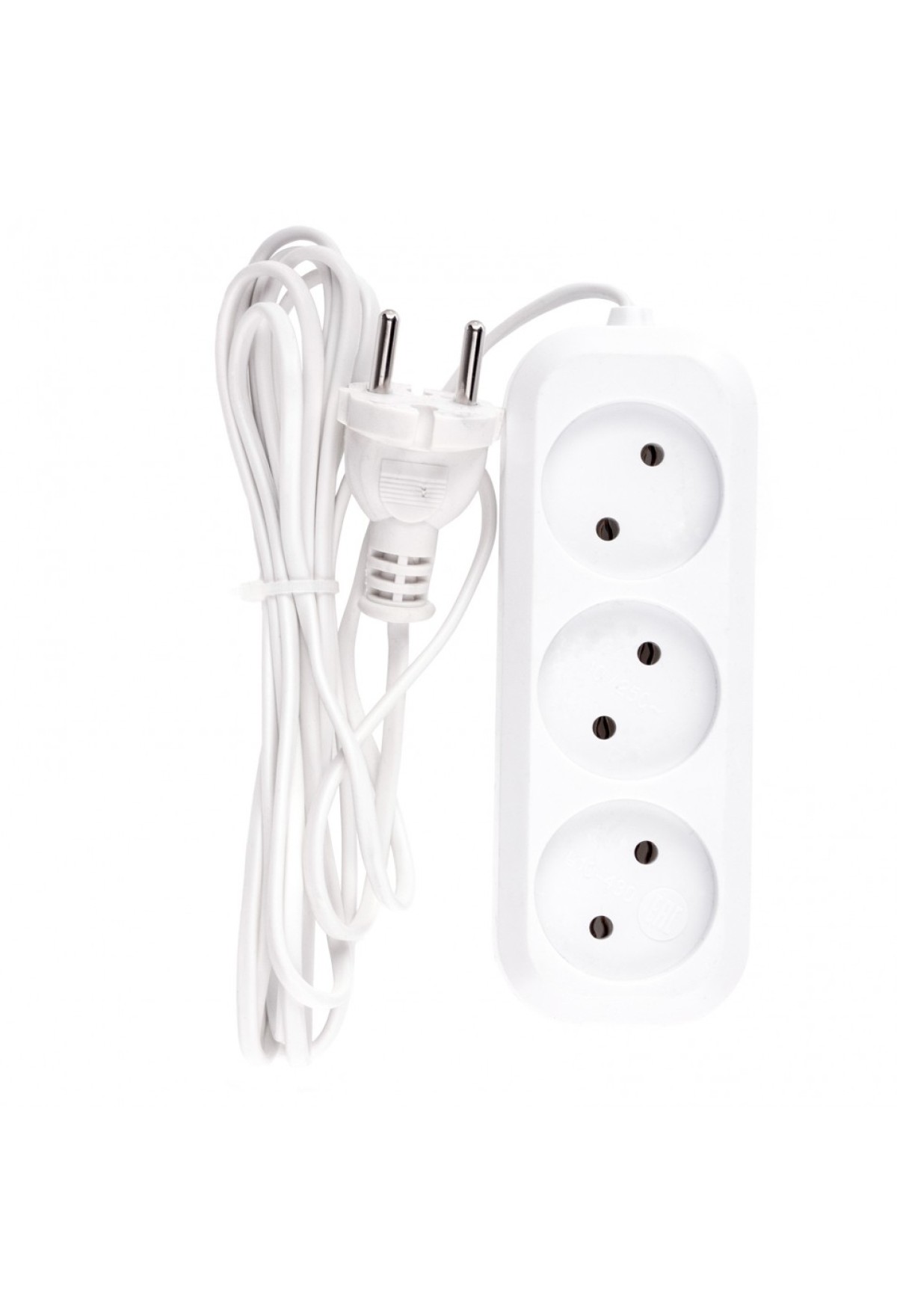 - Корпус удлинителя изготовлен из белого пластика, устойчивого к механическому воздействию и износу.