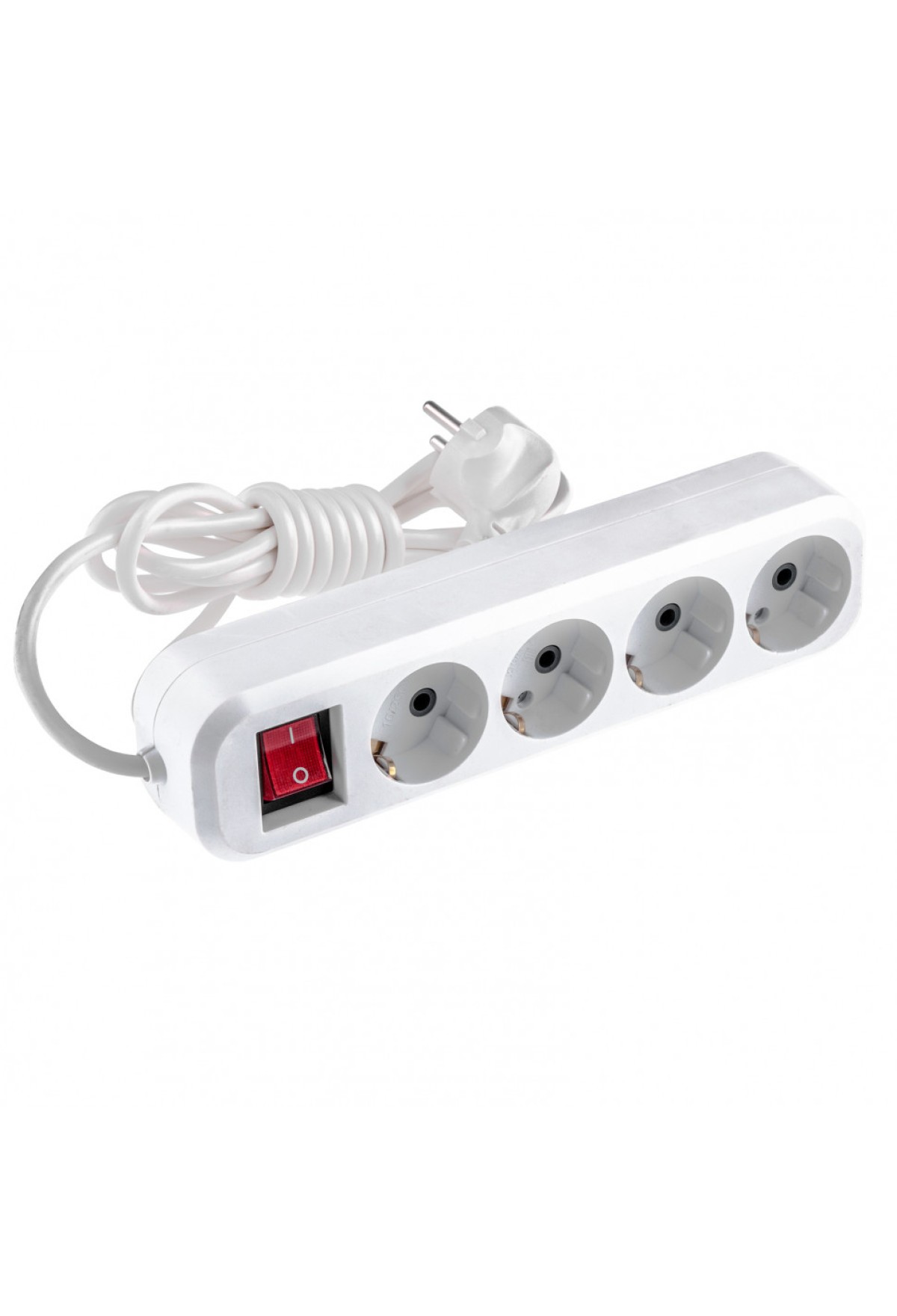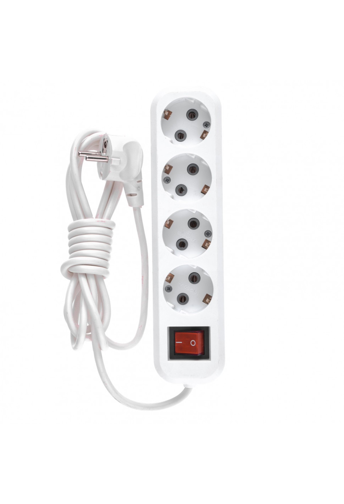 Удлинитель бытовой, с заземлением и выключателем, 2 м, 4 розетки, 10 A, серия УХз10 Denzel