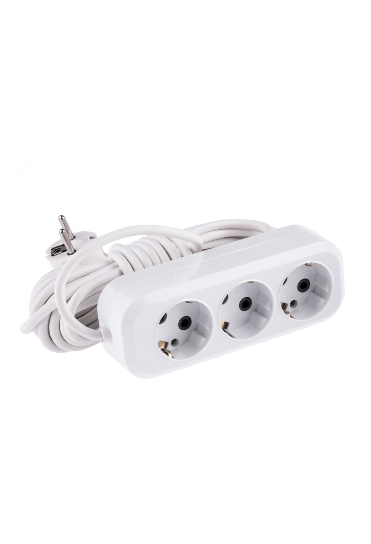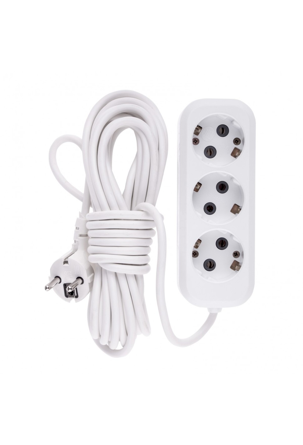 - Корпус удлинителя изготовлен из белого пластика, устойчивого к механическому воздействию и износу.