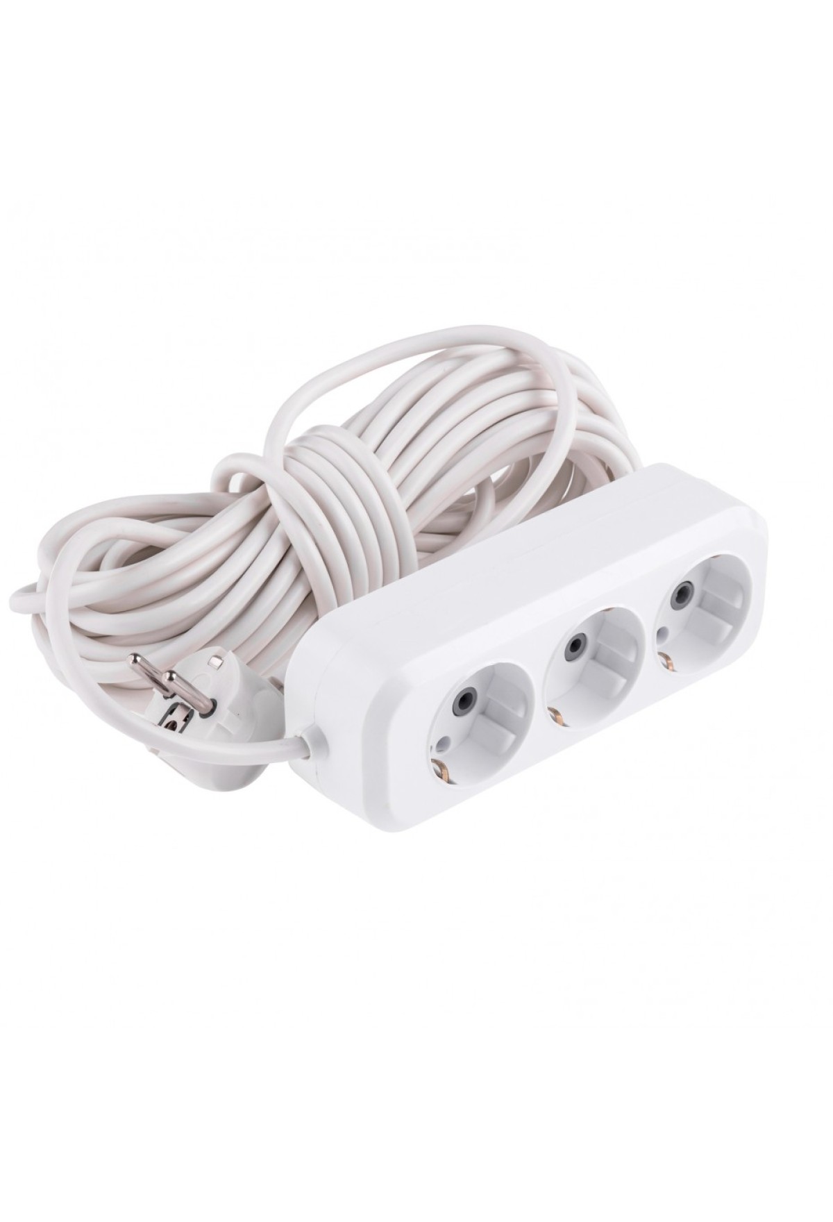 - Корпус удлинителя изготовлен из белого пластика, устойчивого к механическому воздействию и износу.