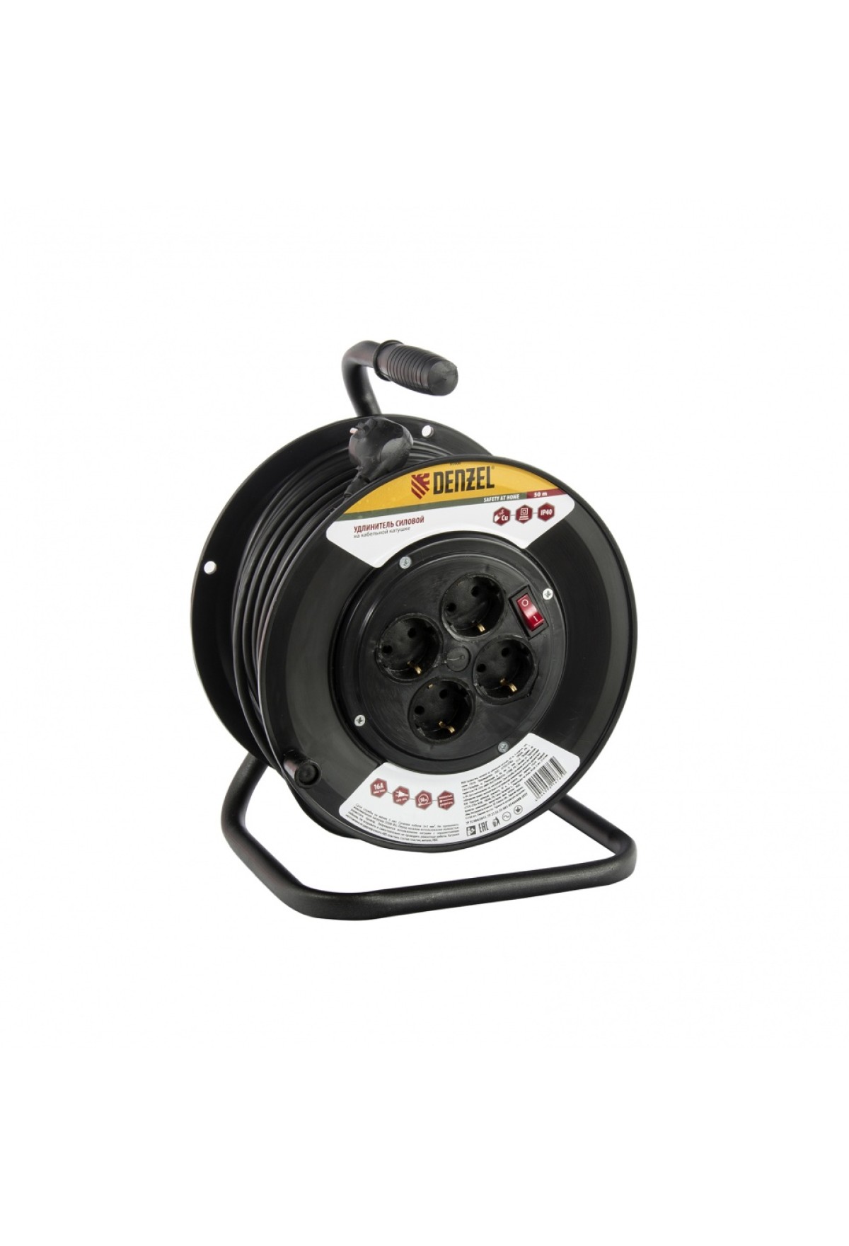 Силовой удлинитель на кабельной катушке Denzel 95906 серии УХз16, с кабелем длиной 50 м и 4 розетками, рассчитан на силу тока 16 А и используется для подключения оборудования к электросети на значительном удалении от стационарного источника энергии. Позволяет подключить 4 инструмента суммарной мощностью не более 3500 Вт. Удобная рукоятка позволяет быстро разматывать и сматывать кабель. Розетки с заземляющими контактами защищают пользователя от поражения электрическим током. Кабель на катушке будет полезен на строительной площадке, а также дома, на даче или в гараже.