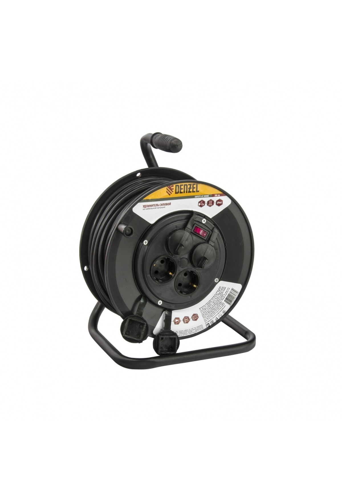 Силовой удлинитель на кабельной катушке Denzel 95908 серии УХз16, со степенью защиты IP44, рассчитан на силу тока 16 А, имеет 4 розетки с крышкой и позволяет подключать электрооборудование к источнику питания, расположенному на расстоянии до 50 м. Позволяет подключить 4 инструмента суммарной мощностью не более 3500 Вт. Удобная рукоятка позволяет быстро разматывать и сматывать кабель. Розетки с заземляющими контактами защищают пользователя от поражения электрическим током. Крышки розеток предотвращают попадание пыли и влаги на разъемы. Удлинитель пригодится на строительной площадке, а также будет полезен дома, на даче или в гараже.