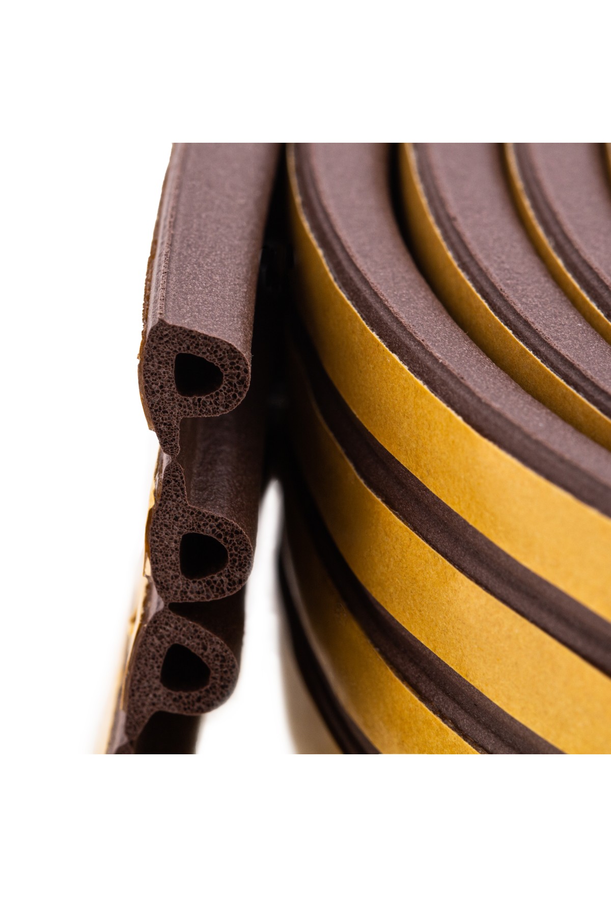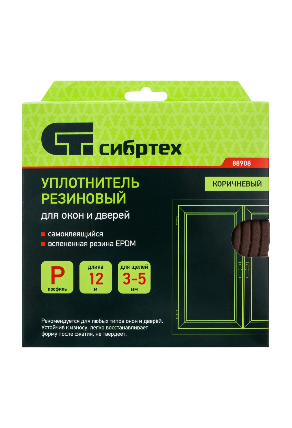 Коричневый резиновый уплотнитель Сибртех 88908 длиной 12 м, профиль «P», предназначен для герметизации и уплотнения оконных и дверных блоков с целью исключения сквозняков и вибраций, защиты от влаги и пыли, создания эффективной тепло- и звукоизоляции. Изделие снижает энергетические и экономические затраты. P профиль 9х5,5мм подойдет для щелей размером 3-5мм.