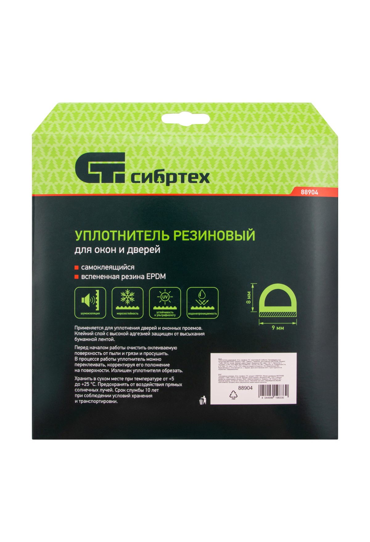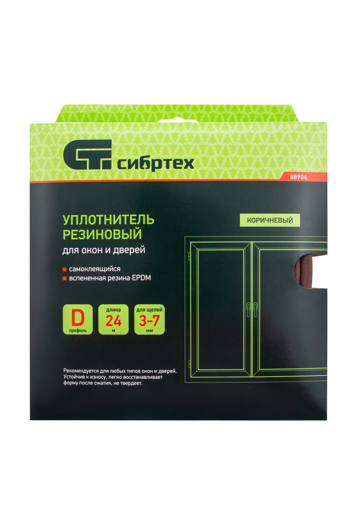Технические характеристики Уплотнитель резиновый, 24 м, профиль "D", коричневый Сибртех