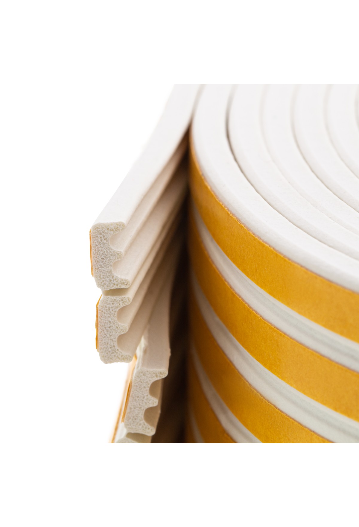 Белый резиновый уплотнитель Сибртех 88905 длиной 24 м, профиль «E», предназначен для герметизации и уплотнения оконных и дверных блоков с целью исключения сквозняков и вибраций, защиты от влаги и пыли, создания эффективной тепло- и звукоизоляции. Изделие снижает энергетические и экономические затраты. E профиль 9 х 4 мм подойдет для щелей размером 2-3,5 мм., ,Преимущества,Изготовлен из износостойкой вспененной резины EPDM.,Легко восстанавливает форму после сжатия, не твердеет.,Выдерживает большие колебания температуры.,Имеет бумажный лайнер для защиты клейкого слоя с высокой адгезией от высыхания.,Рассчитан на долгий срок службы.