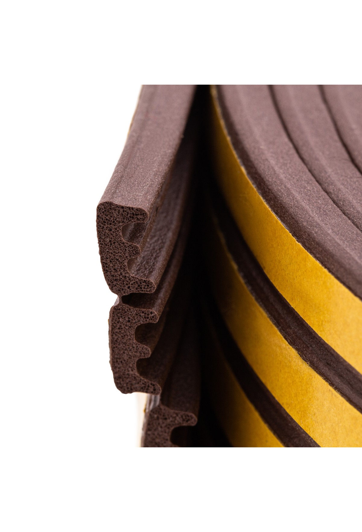 Коричневый резиновый уплотнитель Сибртех 88906 длиной 24 м, профиль «E», предназначен для герметизации и уплотнения оконных и дверных блоков с целью исключения сквозняков и вибраций, защиты от влаги и пыли, создания эффективной тепло- и звукоизоляции. Изделие снижает энергетические и экономические затраты. E профиль 9 x 4 мм подойдет для щелей размером 2-3,5 мм.