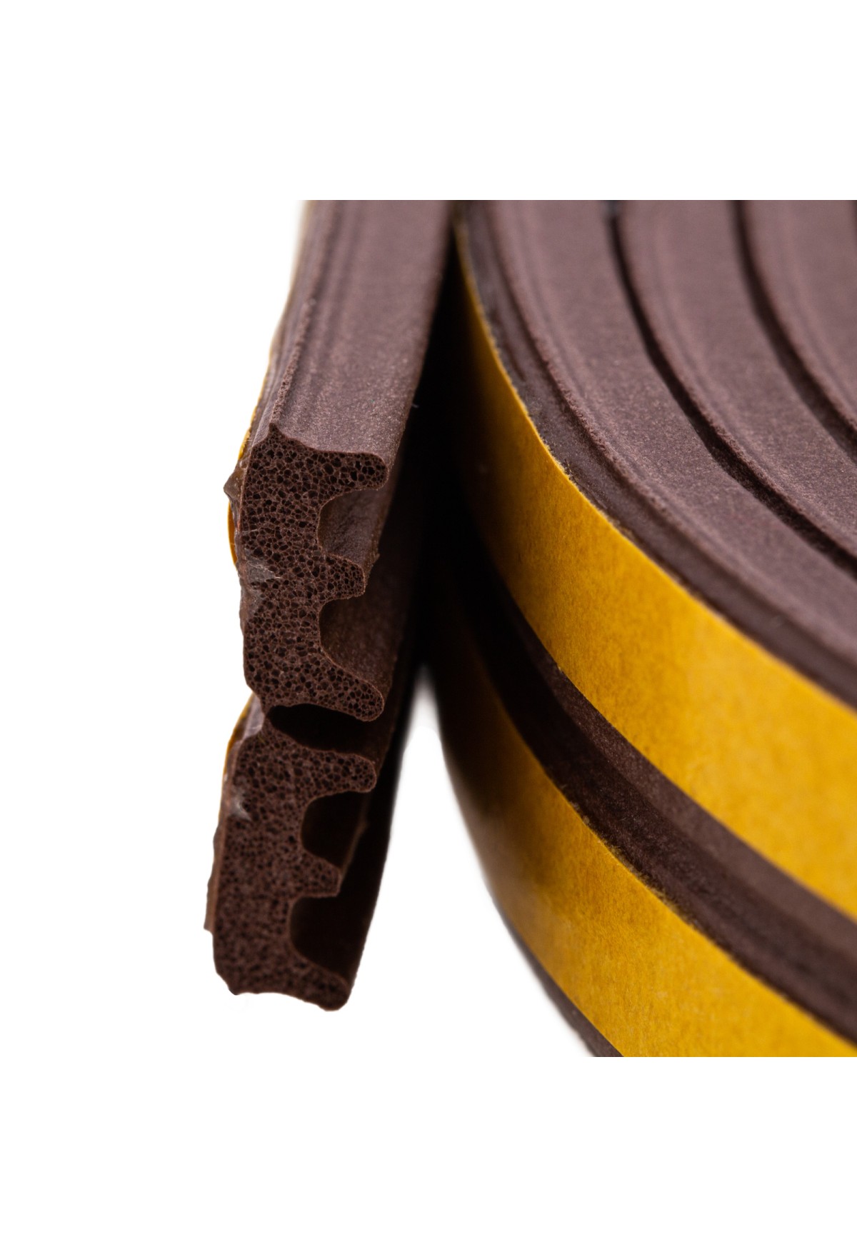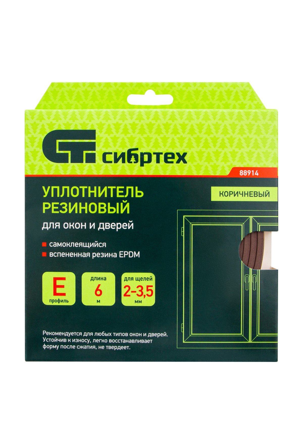 Коричневый резиновый уплотнитель Сибртех 88914 длиной 6 м, профиль «Е», предназначен для герметизации и уплотнения оконных и дверных блоков с целью исключения сквозняков и вибраций, защиты от влаги и пыли, создания эффективной тепло- и звукоизоляции. Изделие снижает энергетические и экономические затраты. E профиль 9 x 4 мм подойдет для щелей размером 2-3,5 мм.