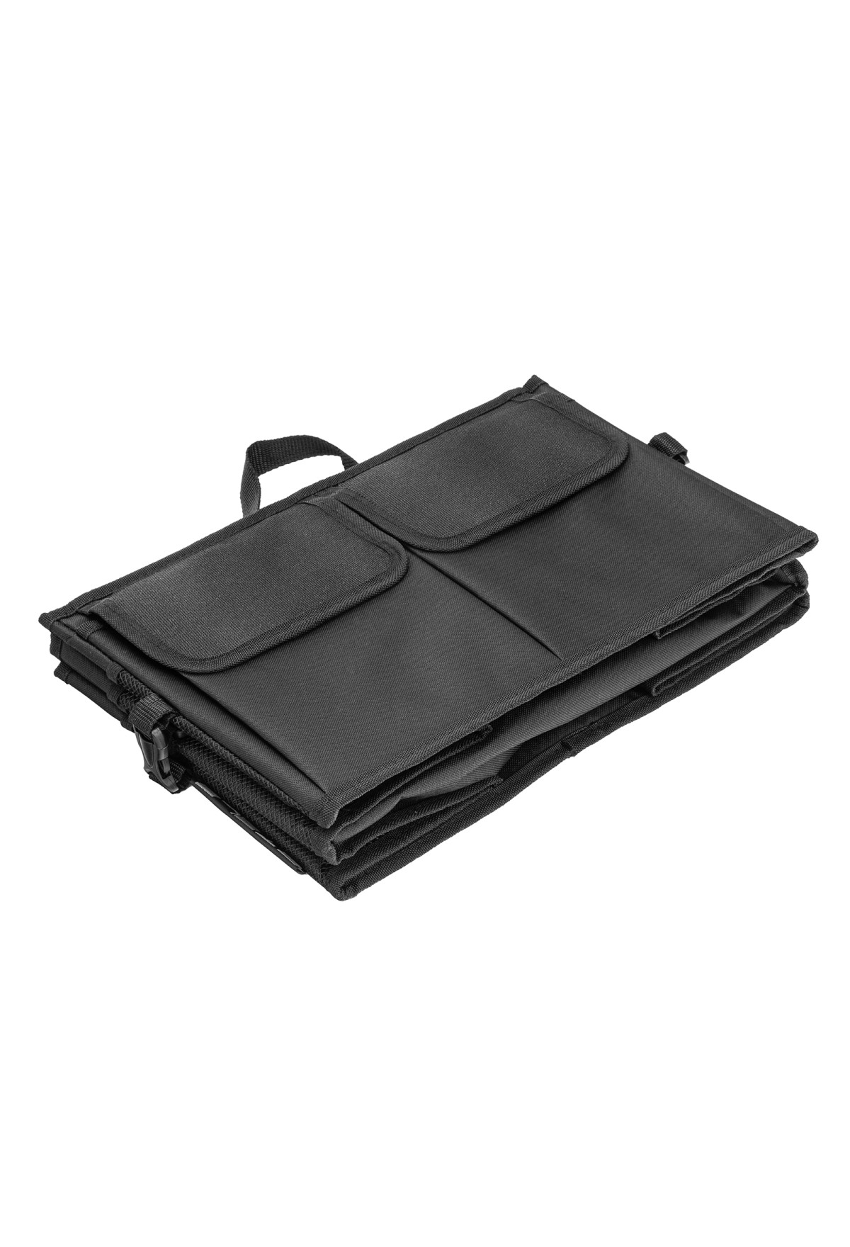 Складной автомобильный органайзер Stels 54395 предназначен для компактного размещения вещей в багажнике. Два больших отделения и сетчатые карманы позволяют хранить габаритные инструменты и мелкие предметы. Благодаря органайзеру инструменты не будут кататься по багажнику во время движения.
