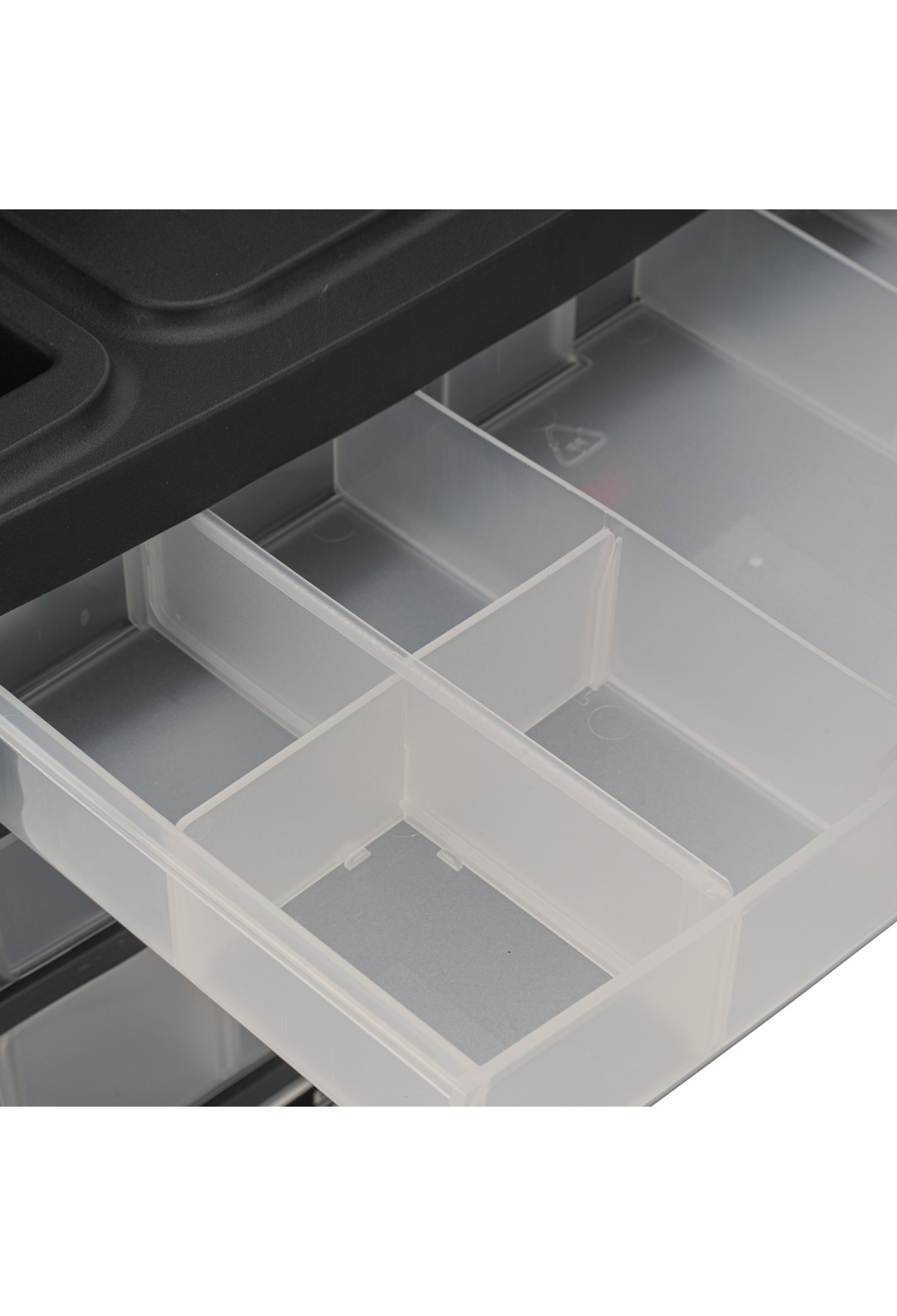 - Продуманная организация внутреннего пространства — в каждый лоток можно установить разделители для сортировки предметов по размеру, это позволит создать до 28 отсеков.