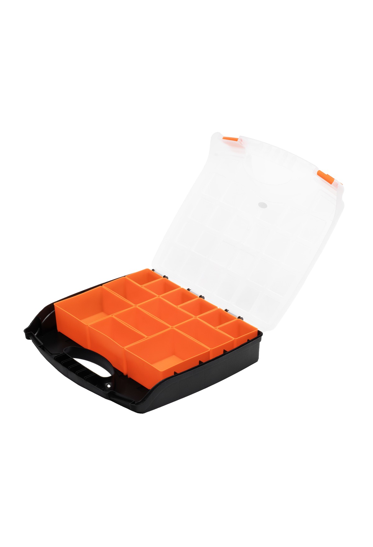 - Защелки и ручка обеспечивают удобство транспортировки органайзера.