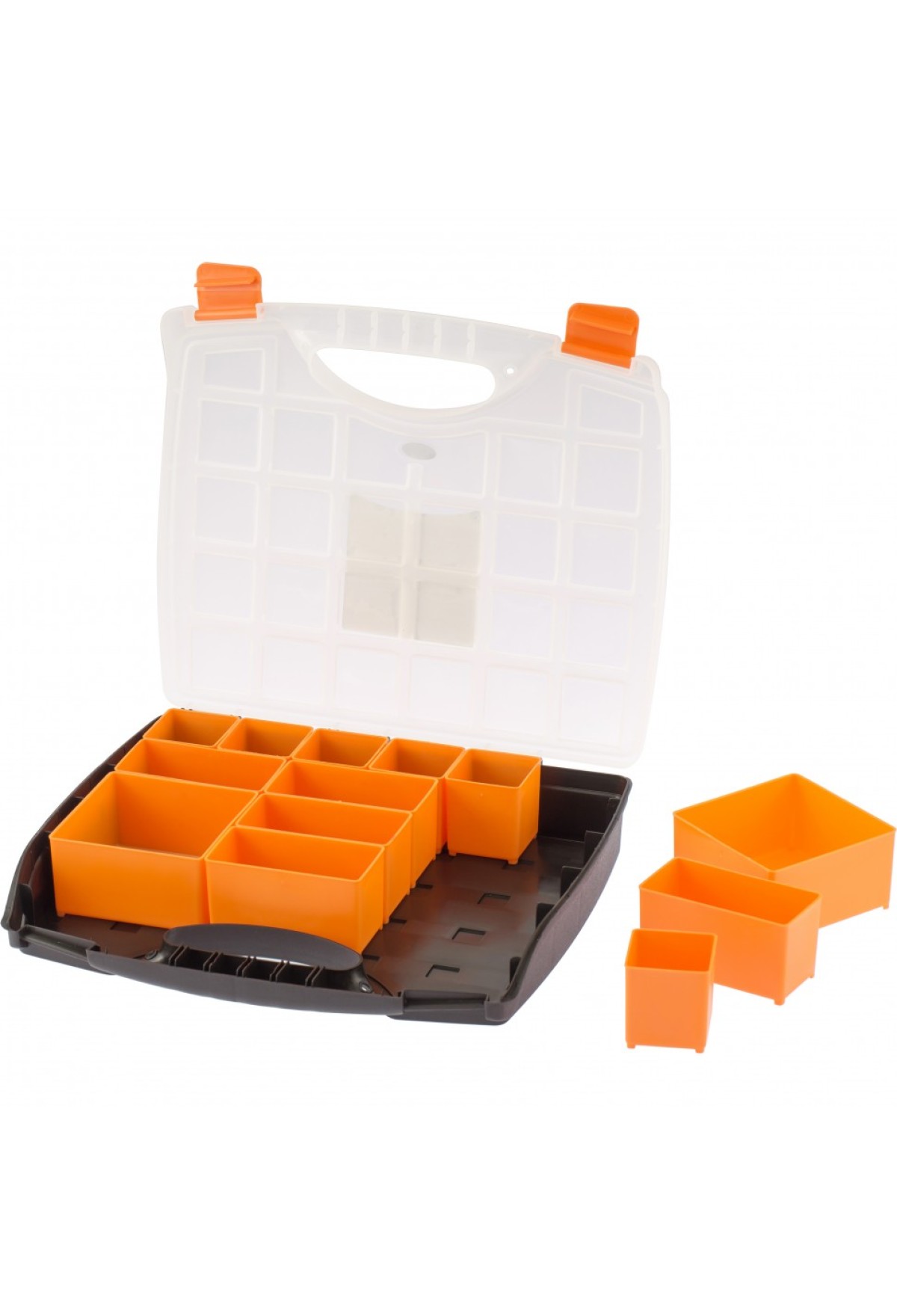 - Защелки и ручка обеспечивают удобство транспортировки органайзера.