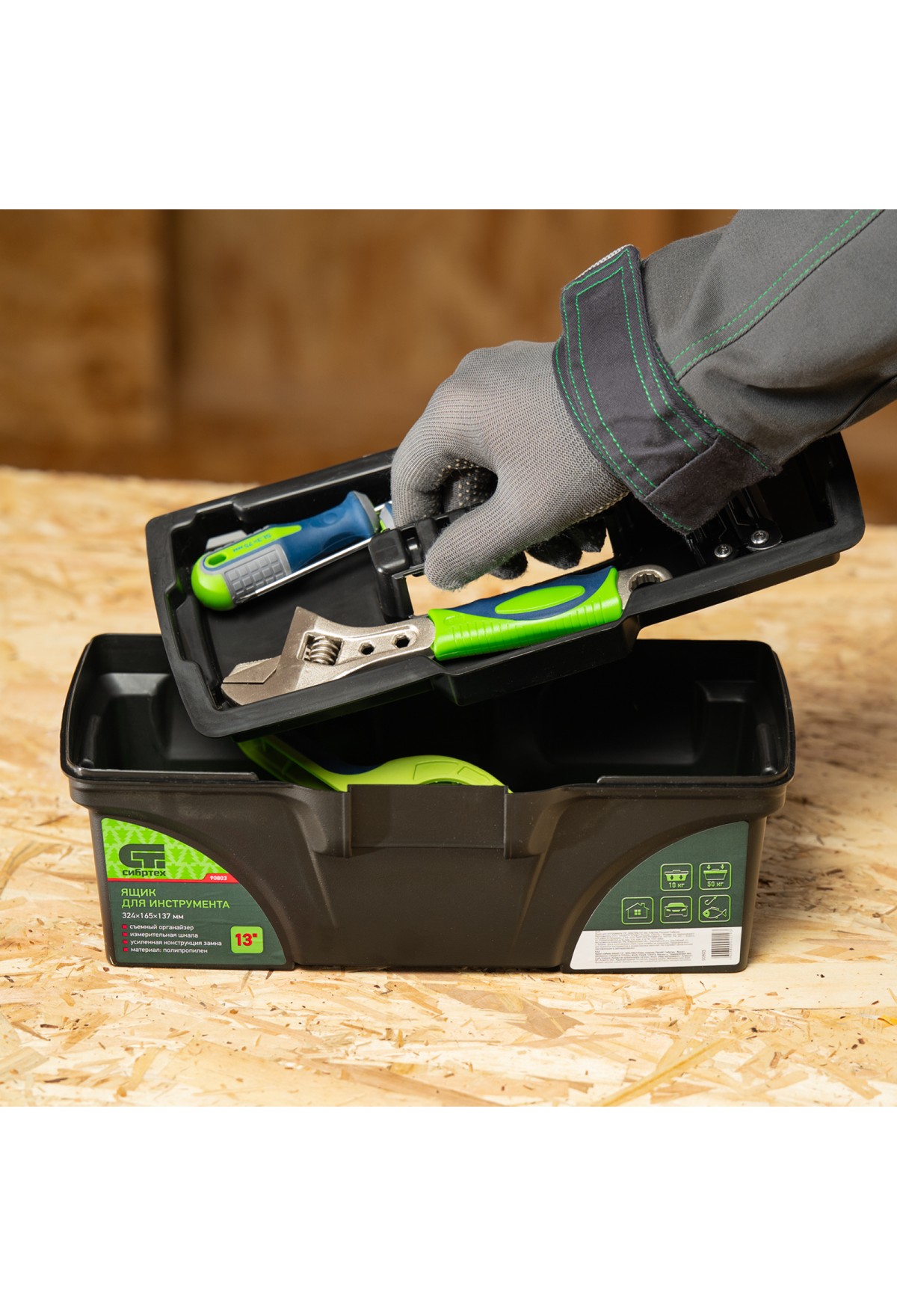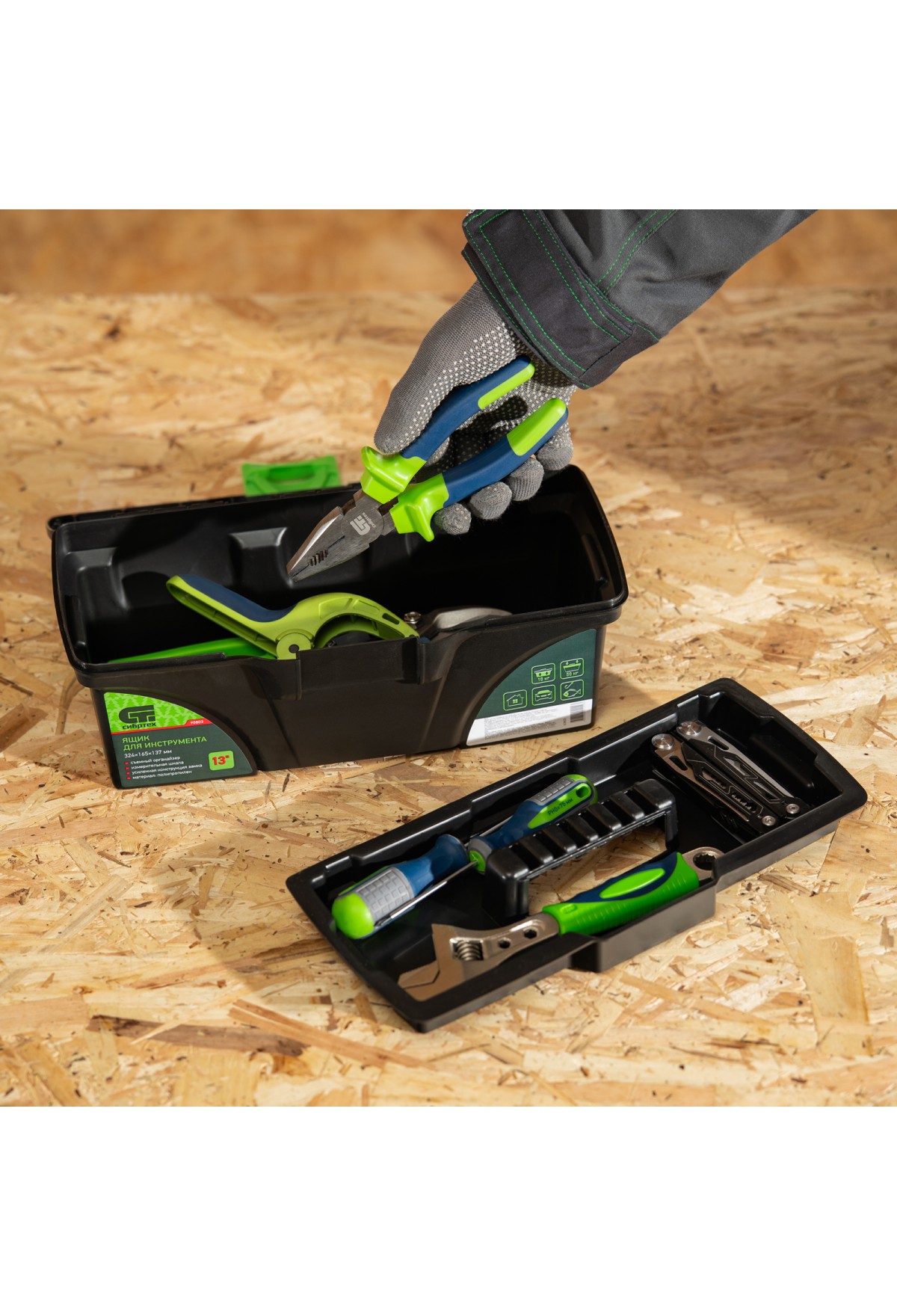 Технические характеристики Ящик для инструмента, 324 х 165 х 137 мм, 13", пластик Россия Сибртех