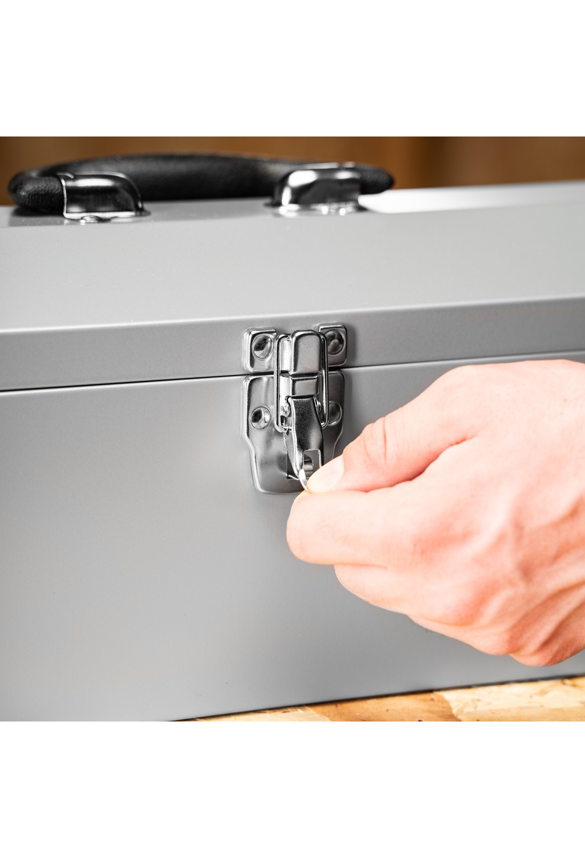 - Крепкий замок — находящиеся в ящике предметы не рассыпятся во время хранения или транспортировки.