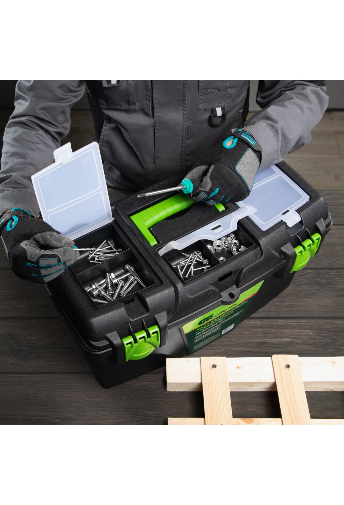 - Удобное хранение крепежа и мелких деталей — в крышке имеются органайзеры.