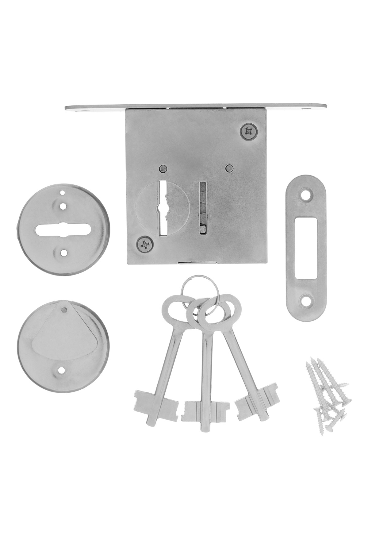 Комплектация | Замок в сборе - 1 штКомплект накладок - 1 штПланка - 1 штКлючи - 3 штКомплект шурупов 4×30 - 4 штКомплект шурупов 3×13 - 4 штКомплект шурупов 4×30 - 4, Комплект шурупов 3×13 - 4, Руководство по эксплуатации - 1 шт |
