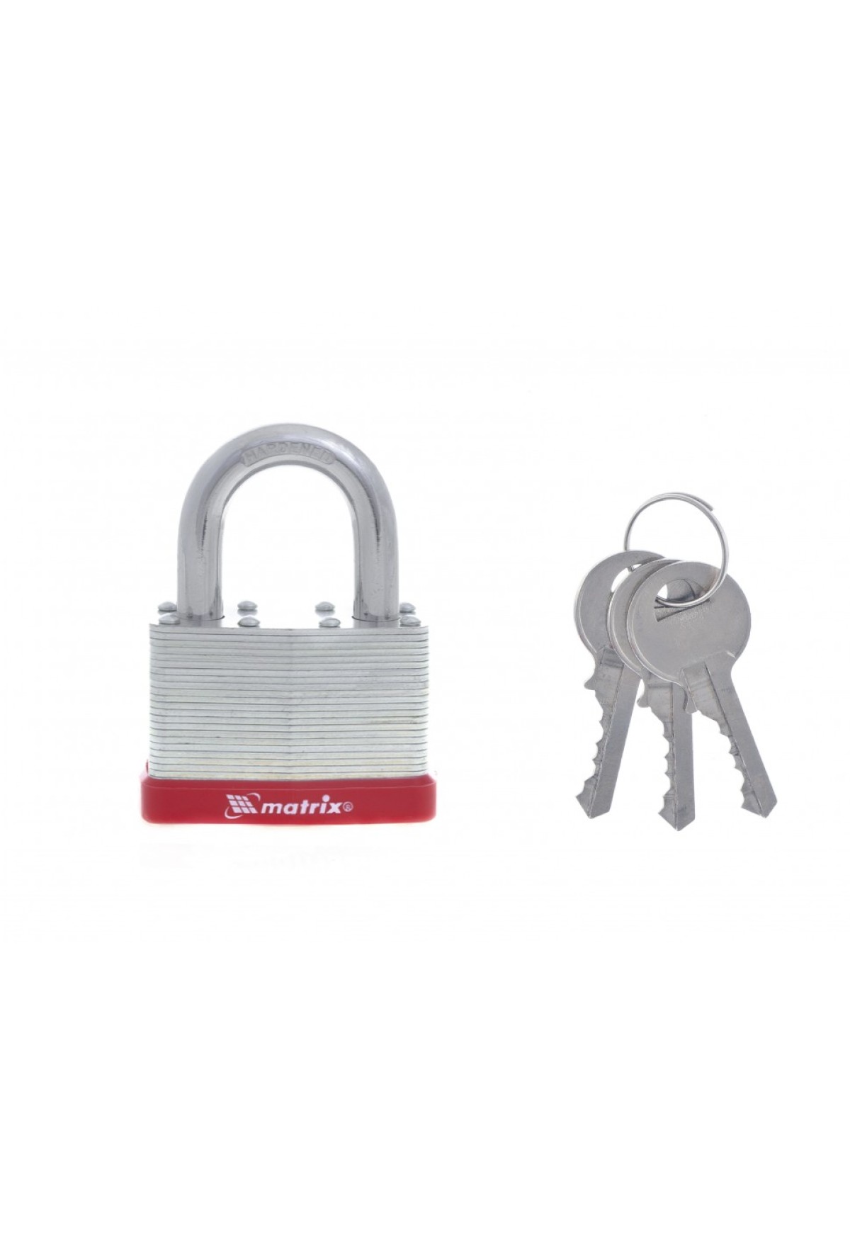 Навесной замок Matrix 91808 шириной 65 мм служит для обеспечения безопасности помещения и ценных вещей. Его можно повесить на ящик, дверь гаража, подсобки, склада, сарая, шкафчика и т.д. Дужку диаметром 9 мм сложно сбить или перекусить.