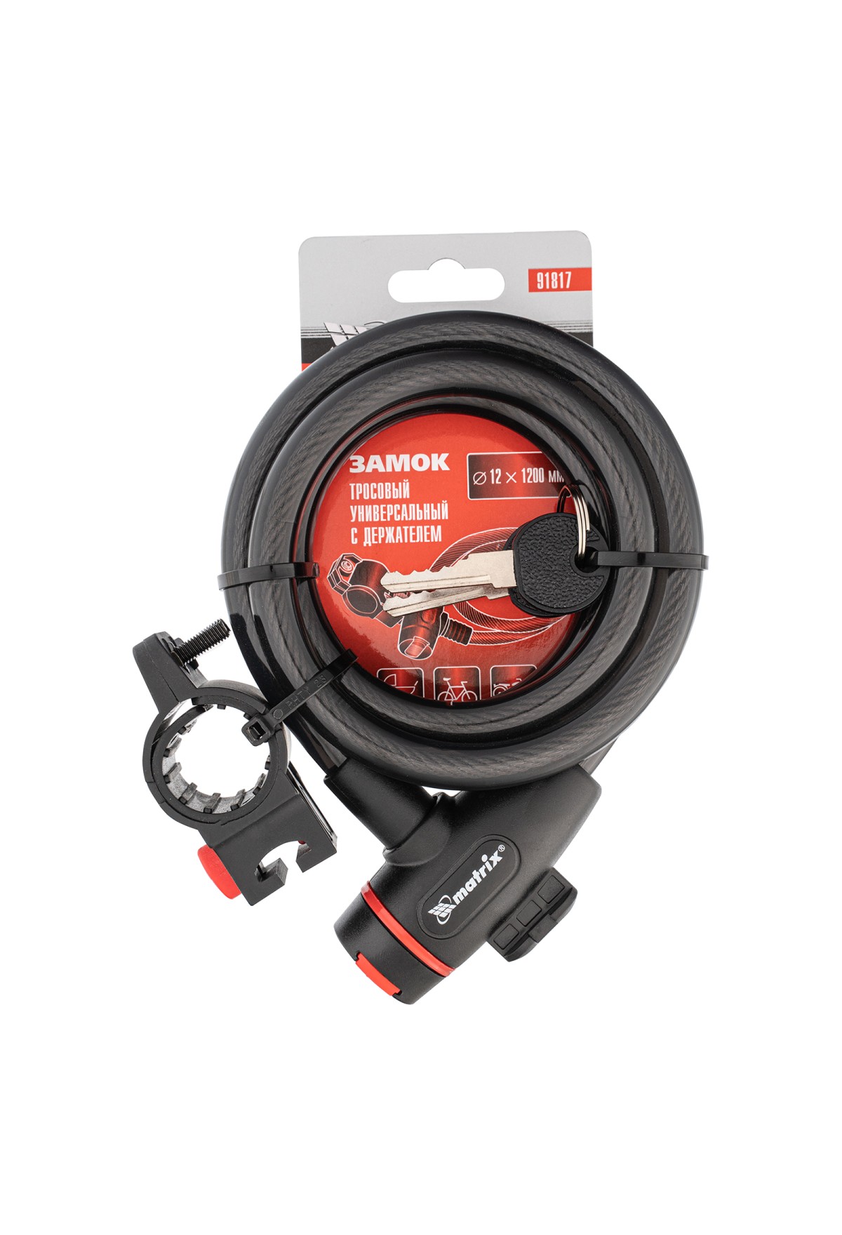 • Замок тросовый универсальный с держателем, 12 х 1200 мм Matrix
