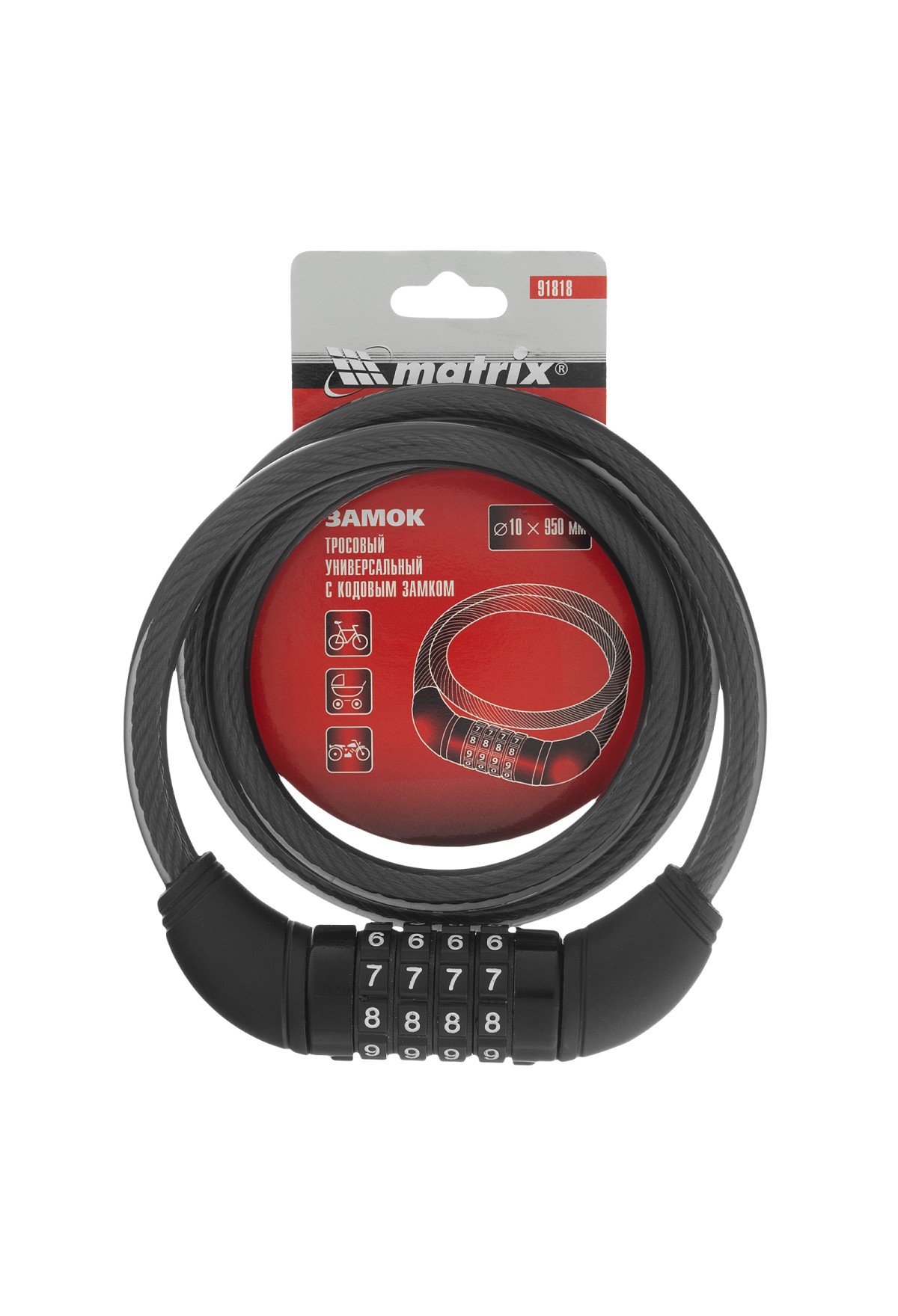 Универсальный тросовый замок Matrix 91818 размером 10 х 950 мм, с кодовым механизмом, обеспечивает безопасность имущества. Его можно брать с собой на прогулку и в дорогу, т.к. он компактен и не занимает много места в сумке. Замок позволяет пристегнуть велосипед, коляску, санки и другие транспортные средства к опоре. Трос длиной 950 мм можно обмотать вокруг колеса и рамы велосипеда для повышения надежности защиты.