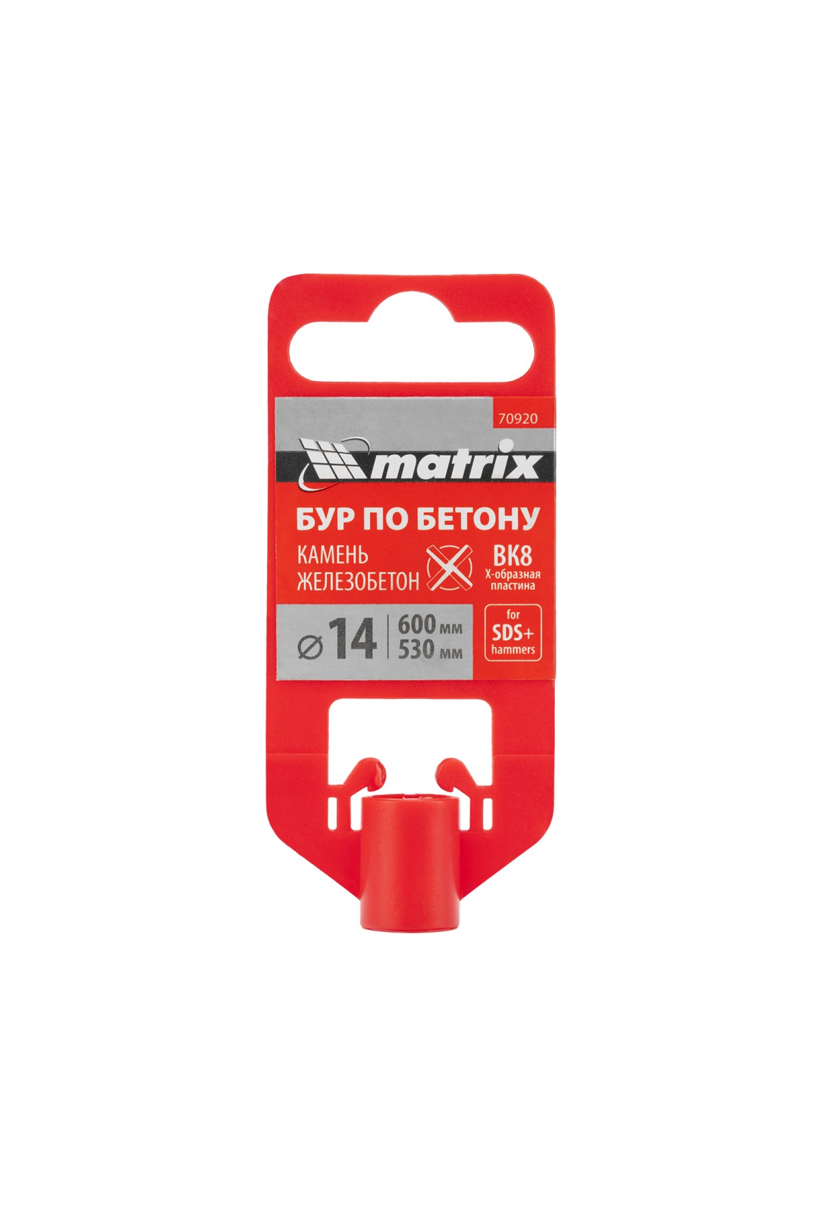 Бур по бетону Matrix 70920 длиной 600 мм, с хвостовиком SDS-plus и крестовой пластиной, предназначен для получения отверстий диаметром 14 мм в бетоне, камне и кирпиче. Крестовая пластина обеспечивает эффективную работу с твердыми материалами, в том числе армированным бетоном. Бур устанавливается в патрон перфоратора и используется во время проведения строительных работ.