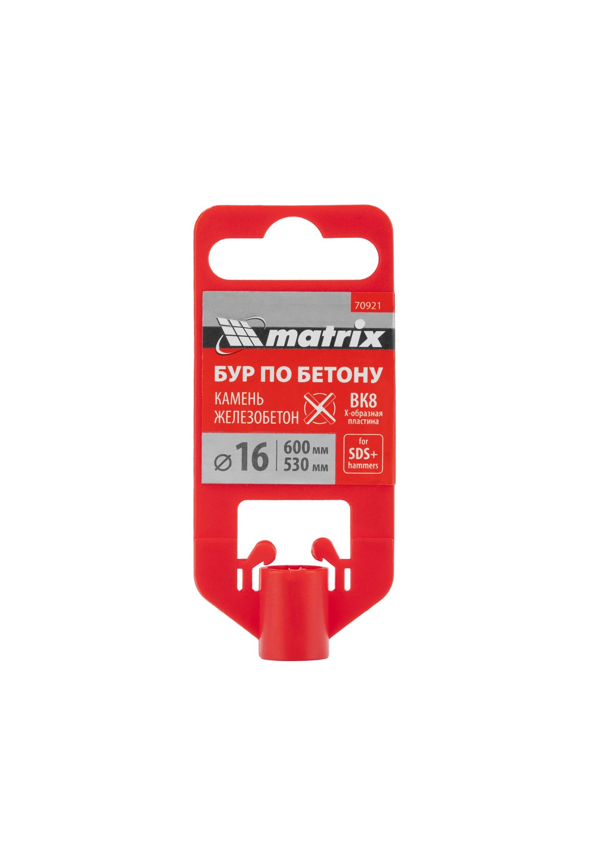 Бур по бетону Matrix 70921 длиной 600 мм, с хвостовиком SDS-plus и крестовой пластиной, предназначен для получения отверстий диаметром 16 мм в бетоне, камне и кирпиче. Крестовая пластина обеспечивает эффективную работу с твердыми материалами, в том числе армированным бетоном. Бур устанавливается в патрон перфоратора и используется во время проведения строительных работ.