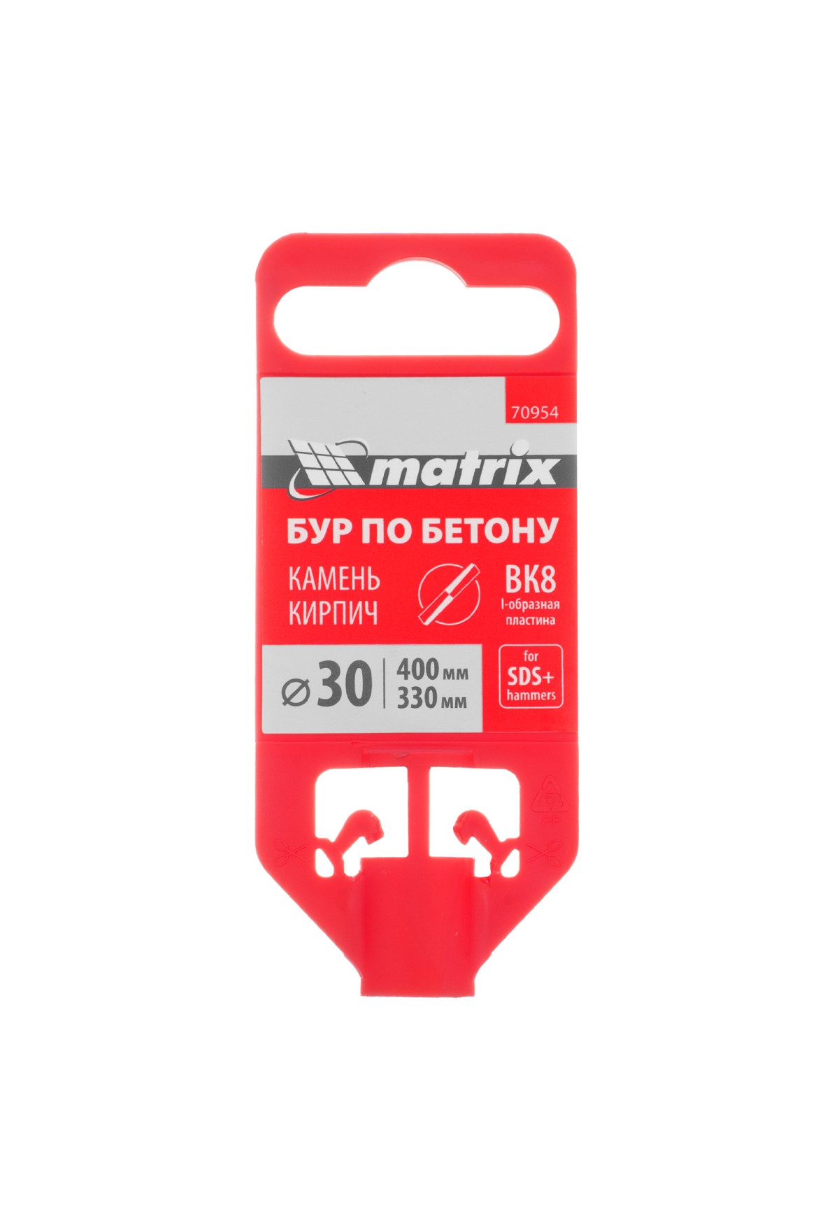 Бур по бетону Matrix 70954 длиной 400 мм, с хвостовиком SDS-plus, предназначен для установки на перфоратор и получения отверстий диаметром 30 мм в бетоне, камне и кирпиче. Позволяет эффективно решать поставленные задачи благодаря режущей пластине из высокотвердого сплава карбида вольфрама ВК8 твердостью 80-90 HRC.