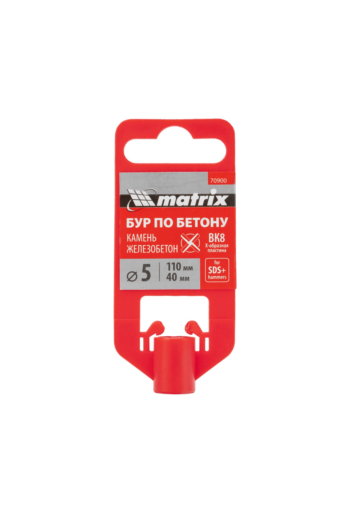 Бур по бетону Matrix 70900 длиной 110 мм, с хвостовиком SDS-plus и крестовой пластиной, предназначен для получения отверстий диаметром 5 мм в бетоне, камне и кирпиче. Крестовая пластина обеспечивает эффективную работу с твердыми материалами, в том числе армированным бетоном. Бур устанавливается в патрон перфоратора и используется во время проведения строительных работ.